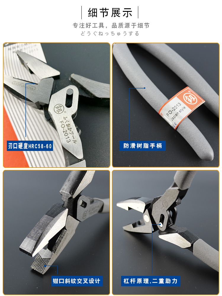 후쿠오카 하드웨어 도구 노동 절약형 산업용 등급 와이어 펜치 대각선 펜치 전기 와이어 펜치 바이스 일본