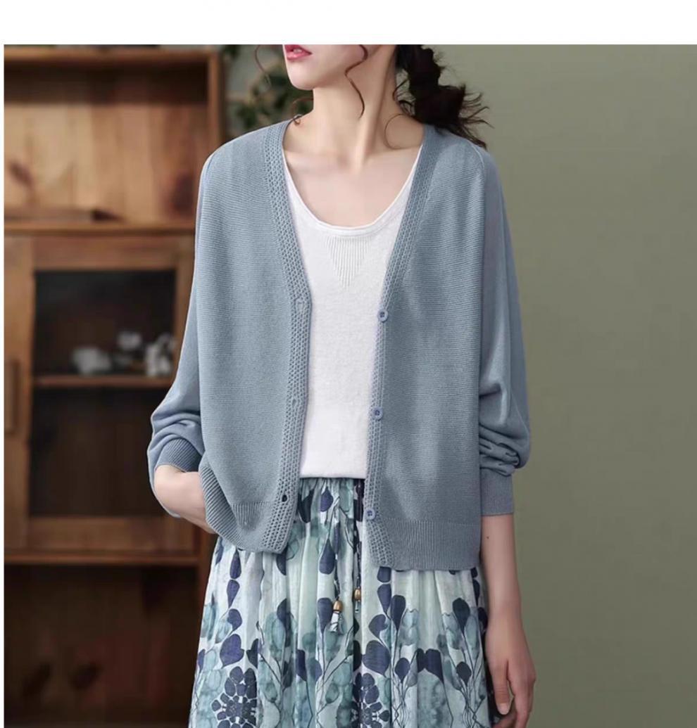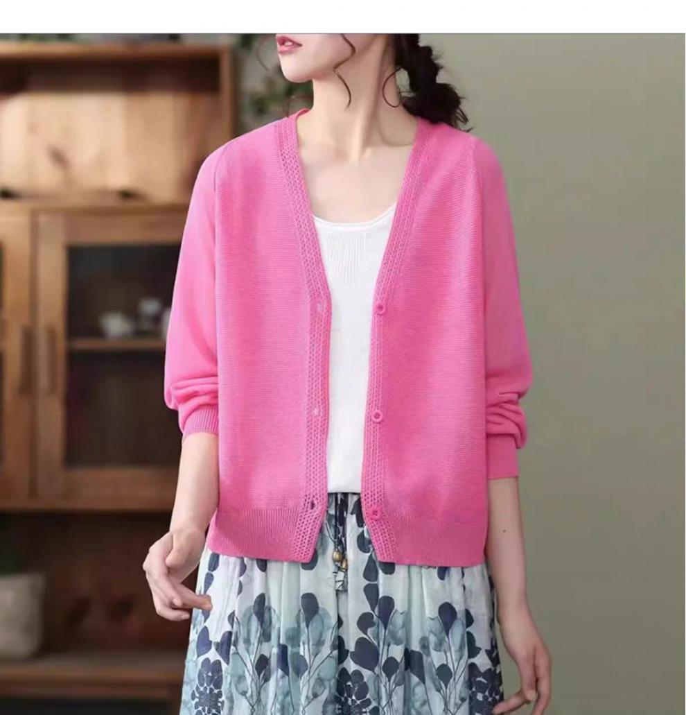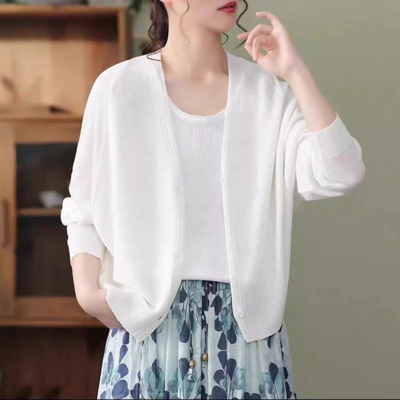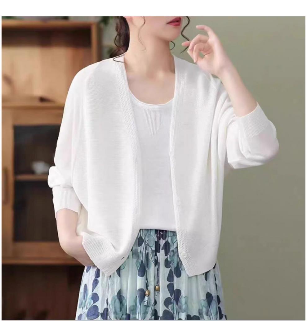 100.00kg 착용 아이스 실크 카디건 여성 느슨한 한국식 플러스 사이즈 선스크린 탑 여름 폭발 통기성 트렌디 니트웨어