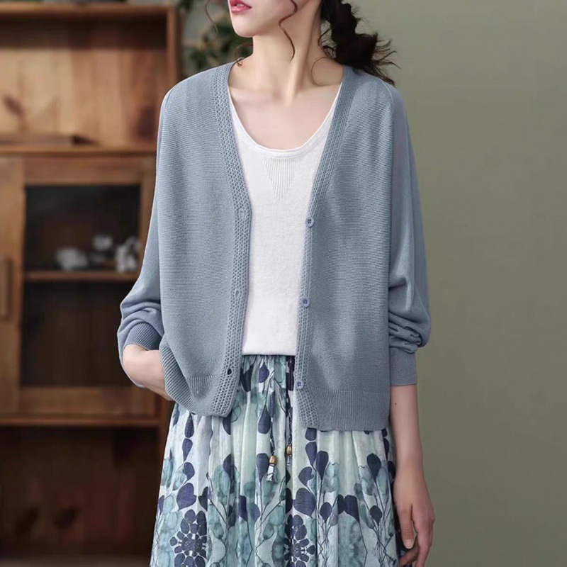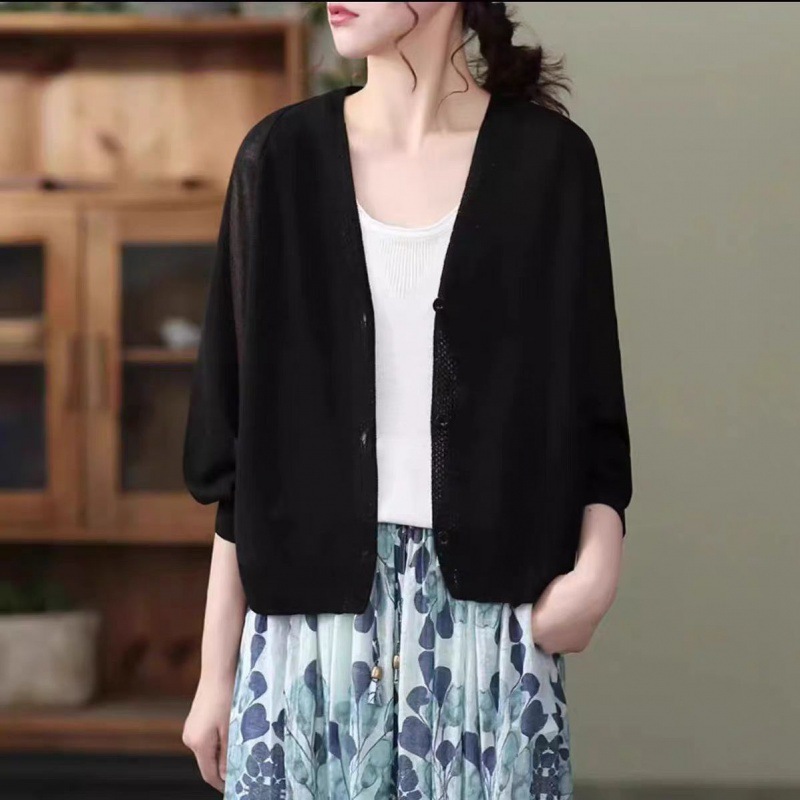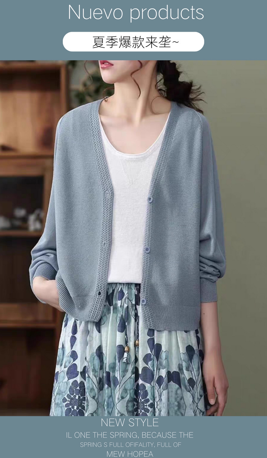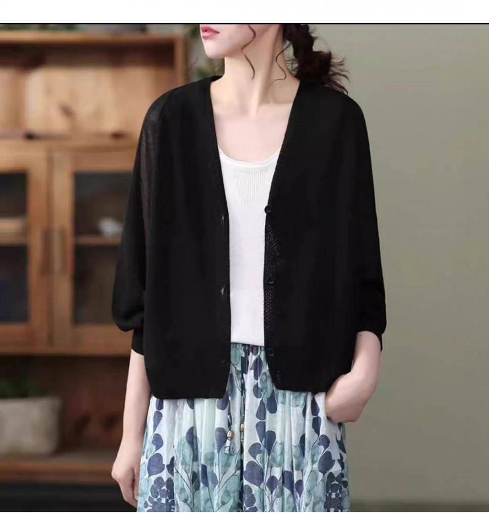 100.00kg 착용 아이스 실크 카디건 여성 느슨한 한국식 플러스 사이즈 선스크린 탑 여름 폭발 통기성 트렌디 니트웨어