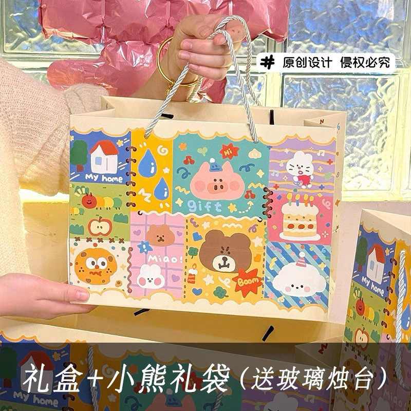 • 디저트 양초 4개 + 곰 선물 가방, 무료 유리 캔들 홀더