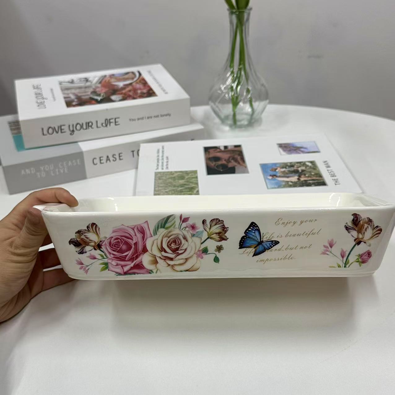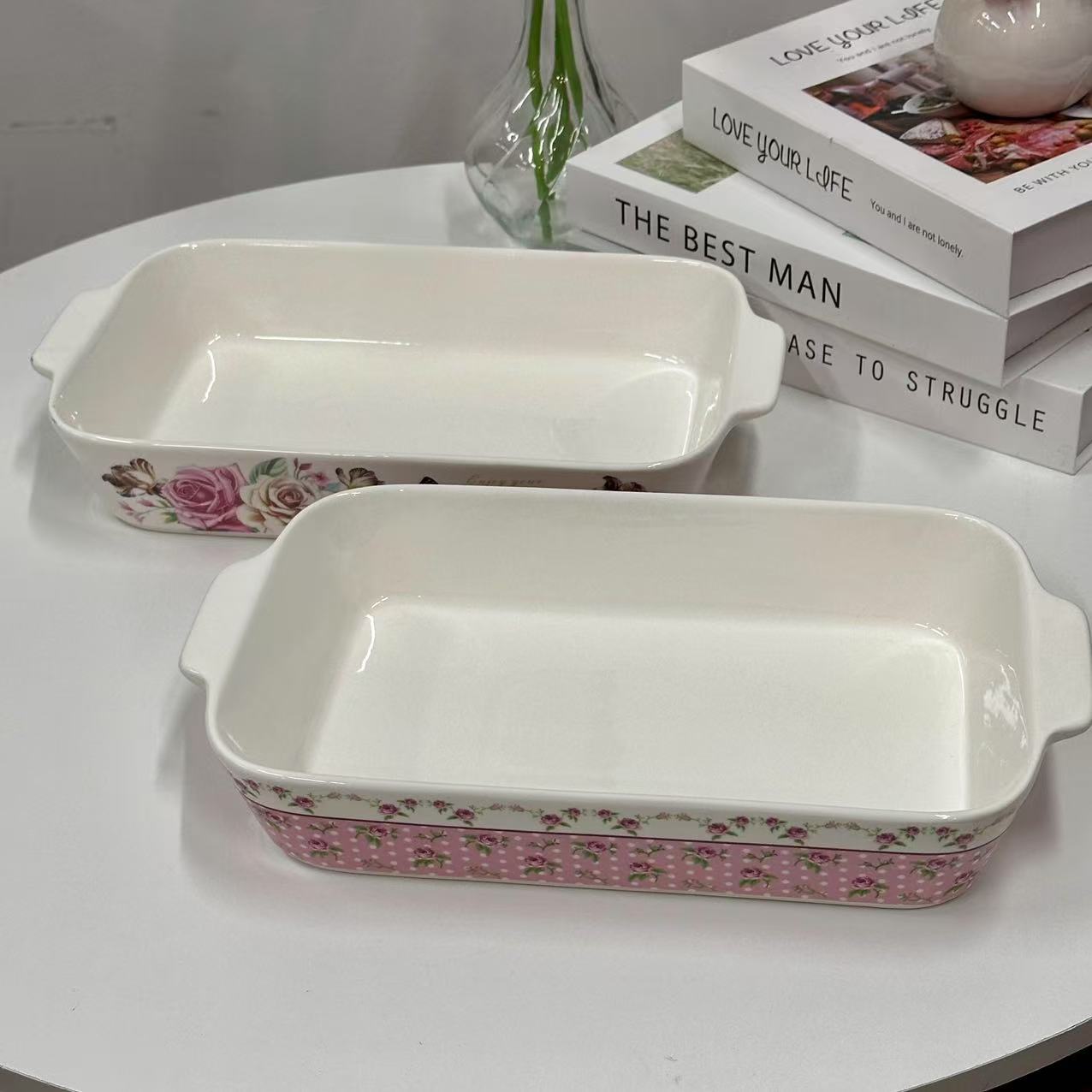 대외 무역 공장 세라믹 북유럽 사각형 양각 베이킹 팬 식기 ins 스타일 디너 플레이트 솔리드 컬러 베이킹 라이스 플레이트 홈