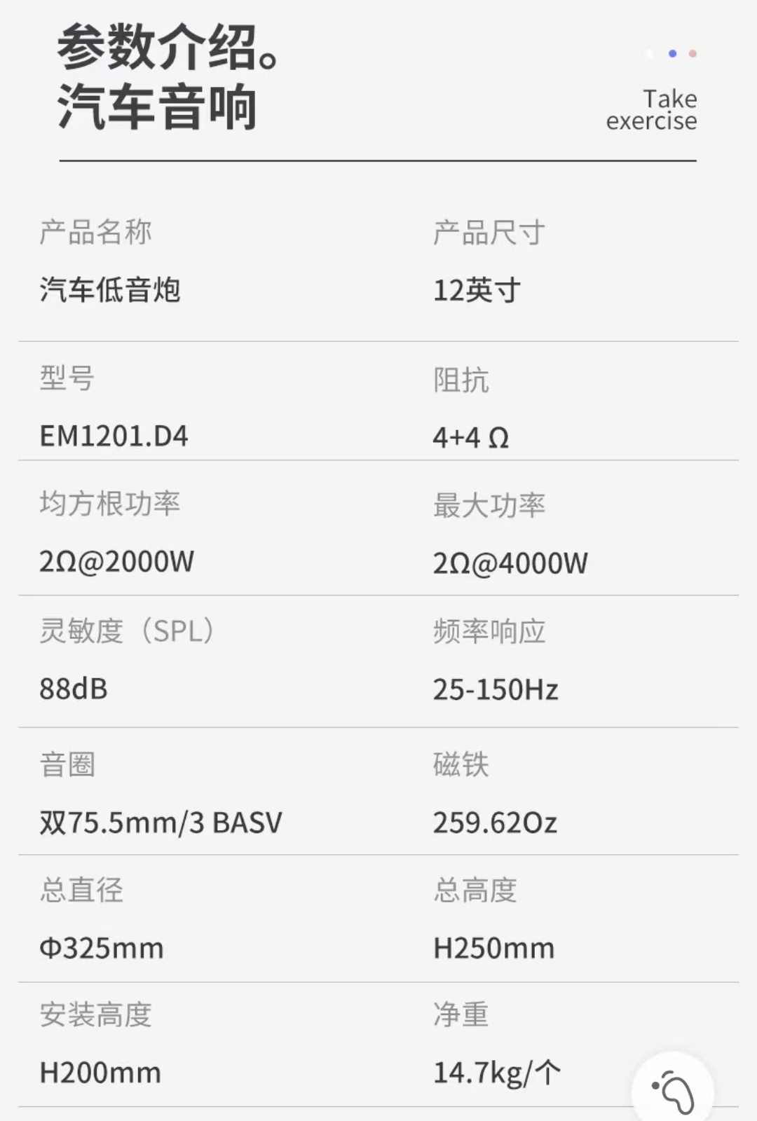 12inch 고출력 자동차 서브우퍼 3000W 최대 출력 이중 보이스 코일 대형 자석스토어 가기