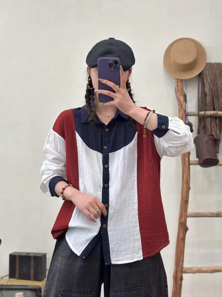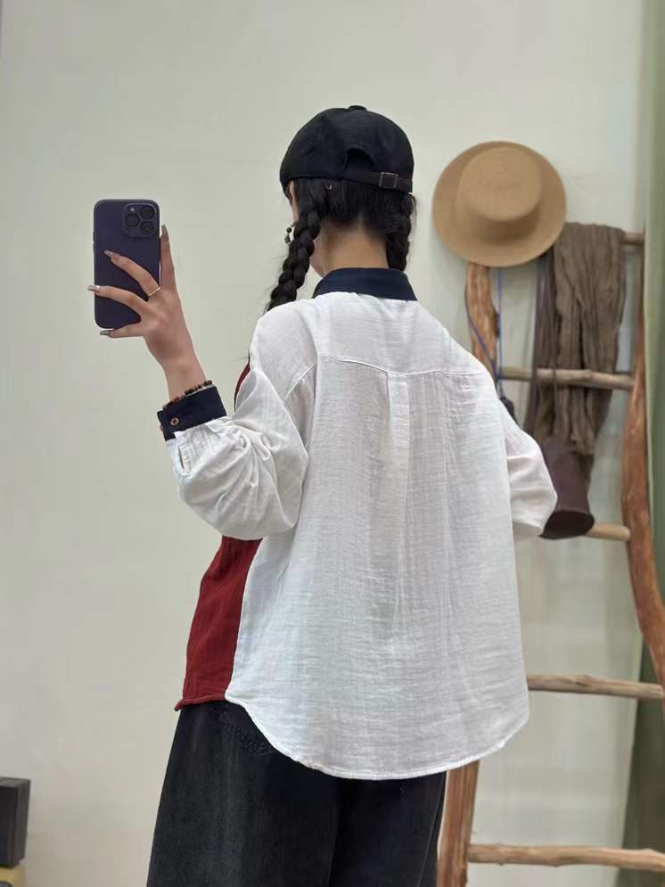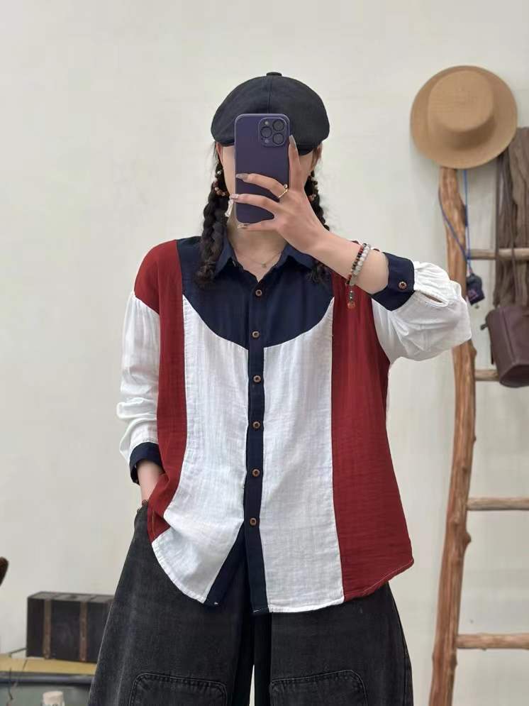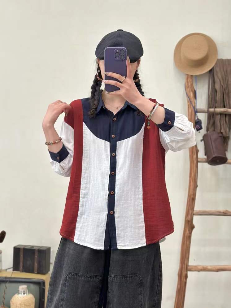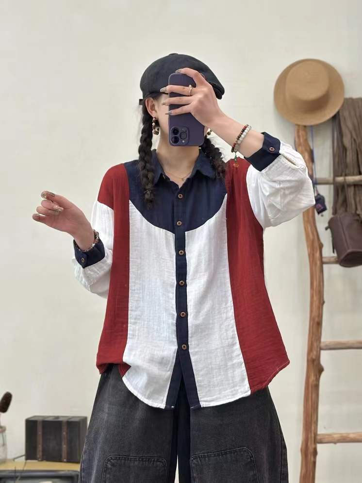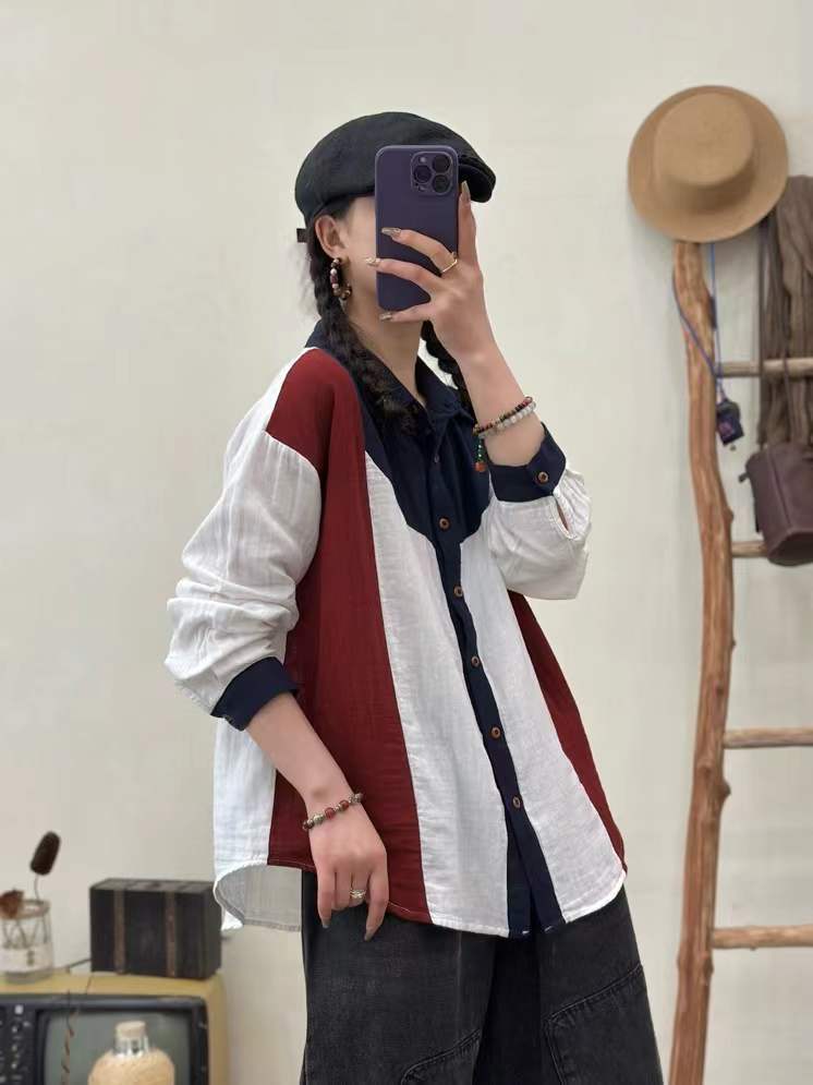 일본 모리 소녀 스트라이프 스티칭 여성용 긴팔 셔츠 카디건 탑 도매 조수의 느슨한 대형 버전스토어 가기