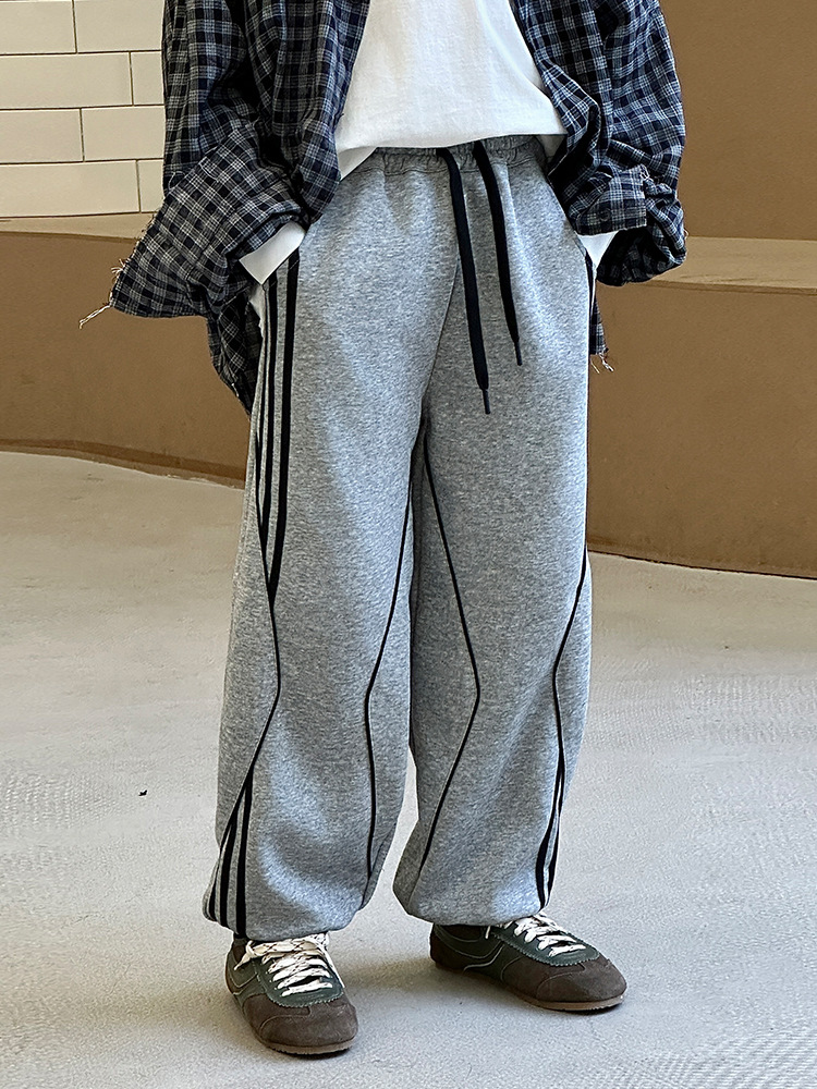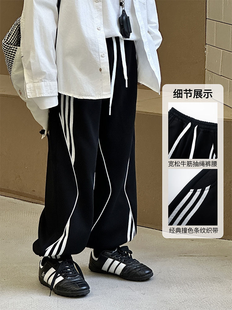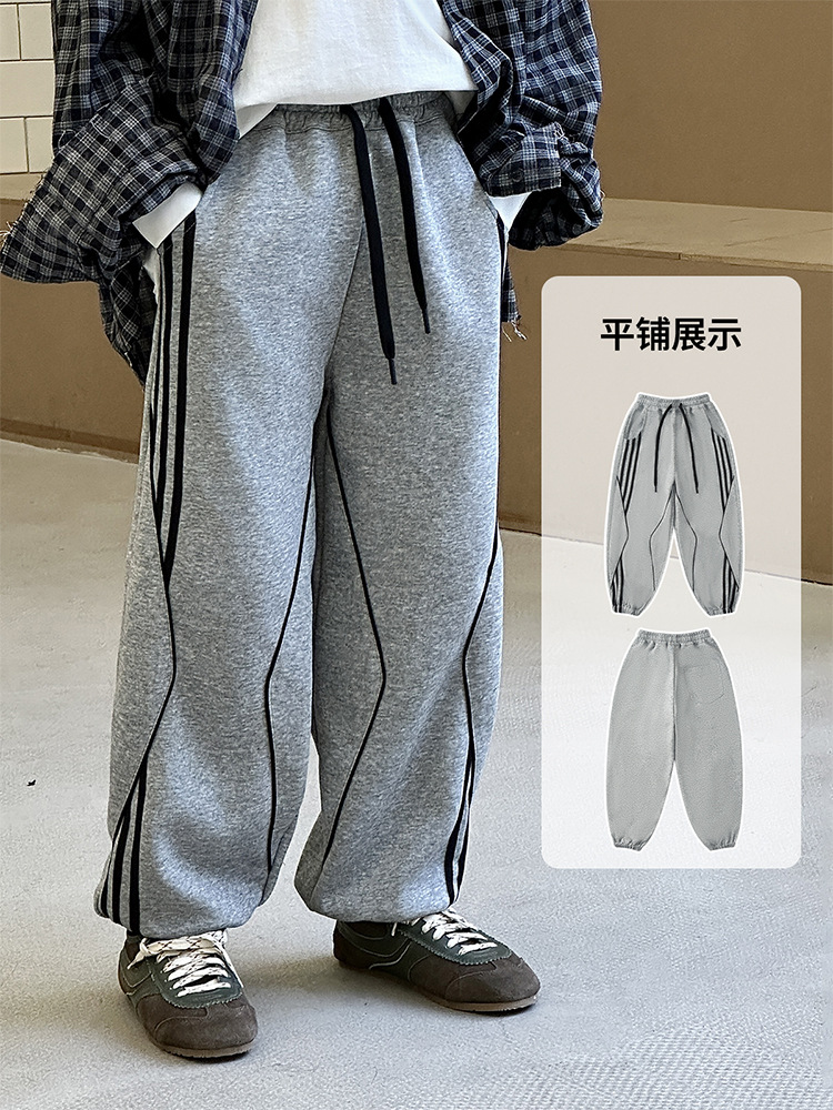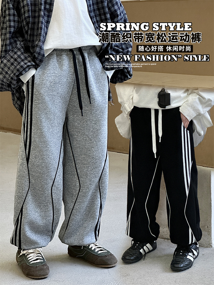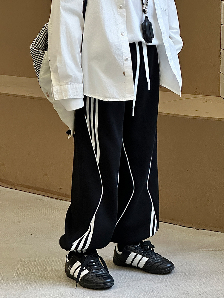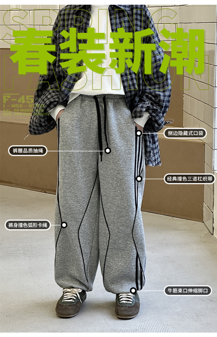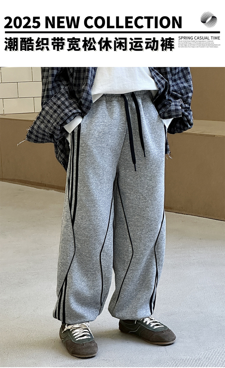 어린이 니트 바지 2025 봄 새 소년 바지 대비 컬러 리본 풀 로프 느슨한 니트 바지스토어 가기