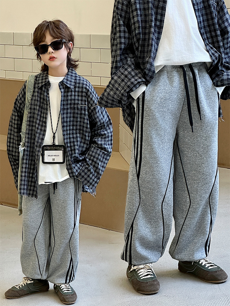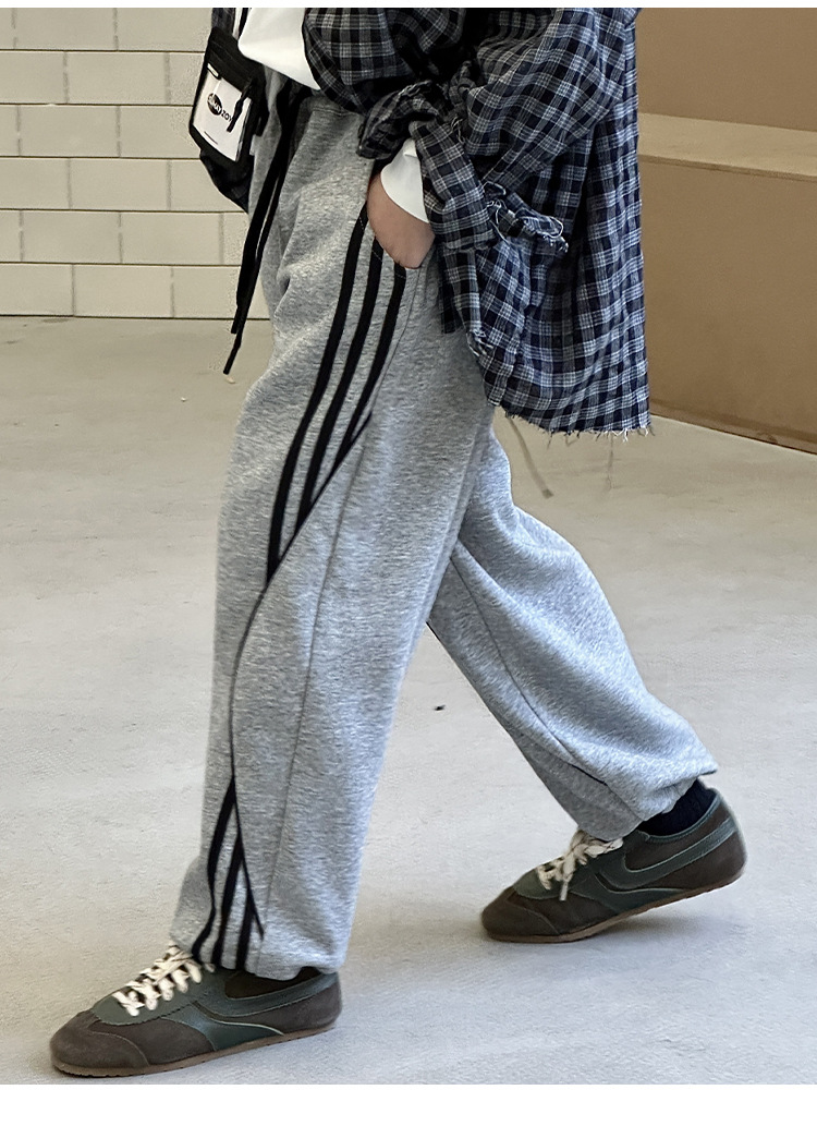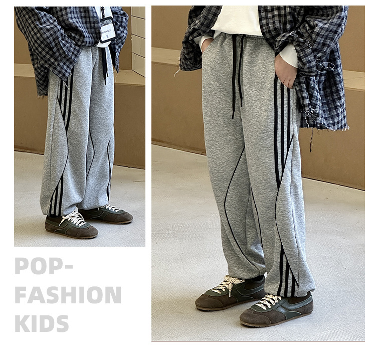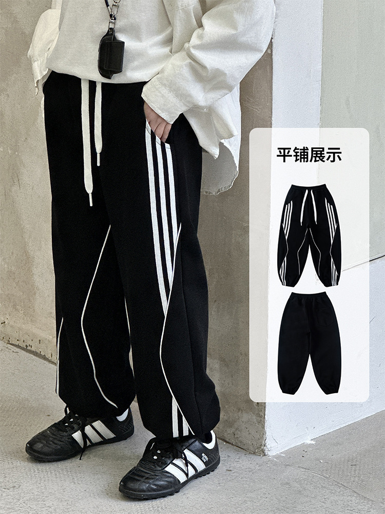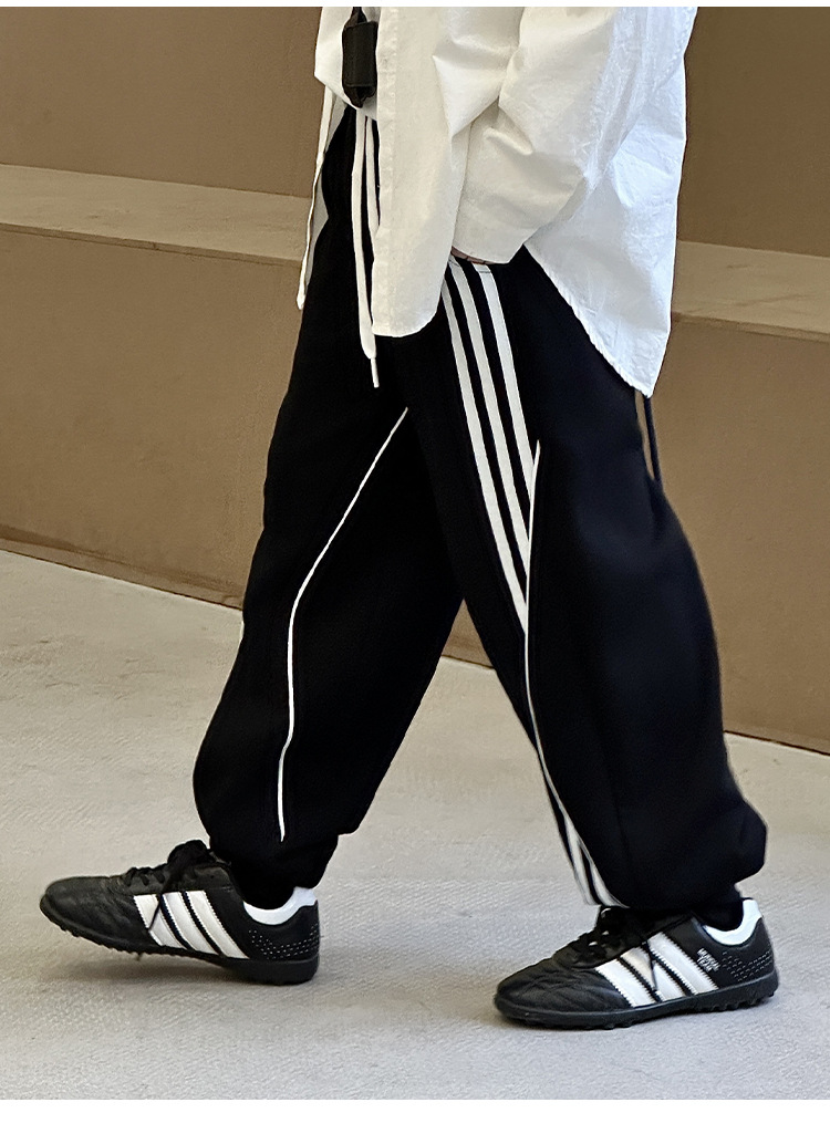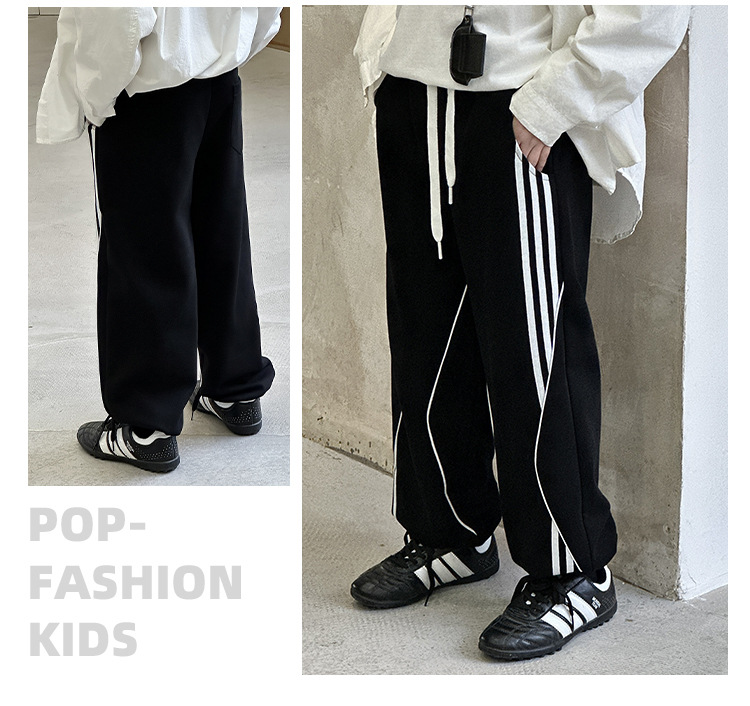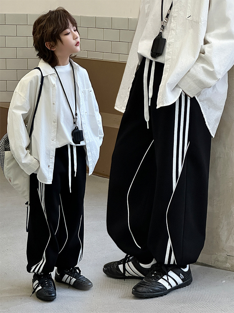 어린이 니트 바지 2025 봄 새 소년 바지 대비 컬러 리본 풀 로프 느슨한 니트 바지스토어 가기