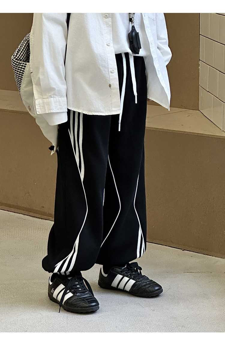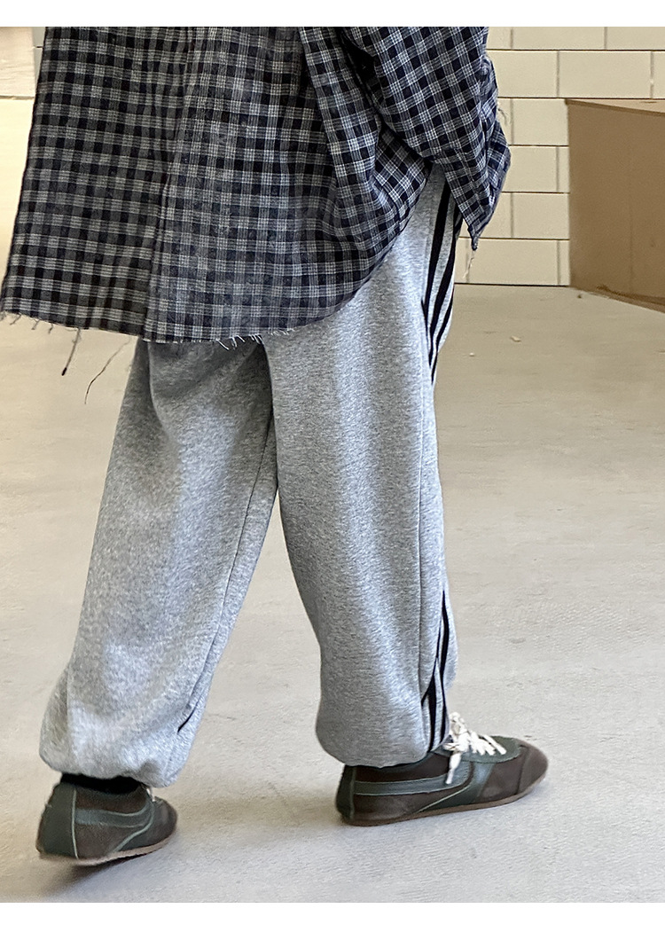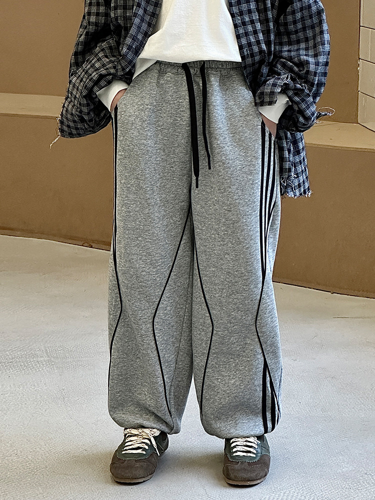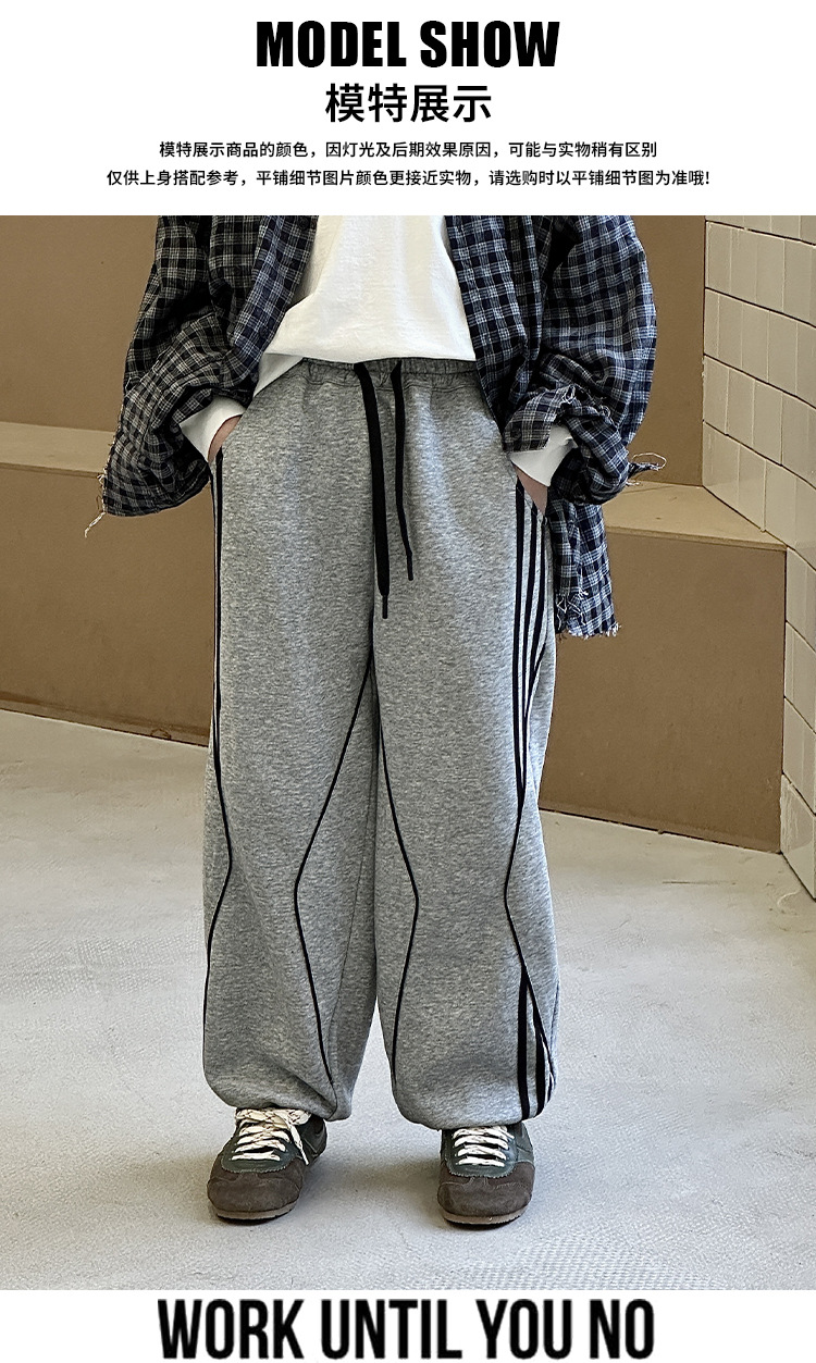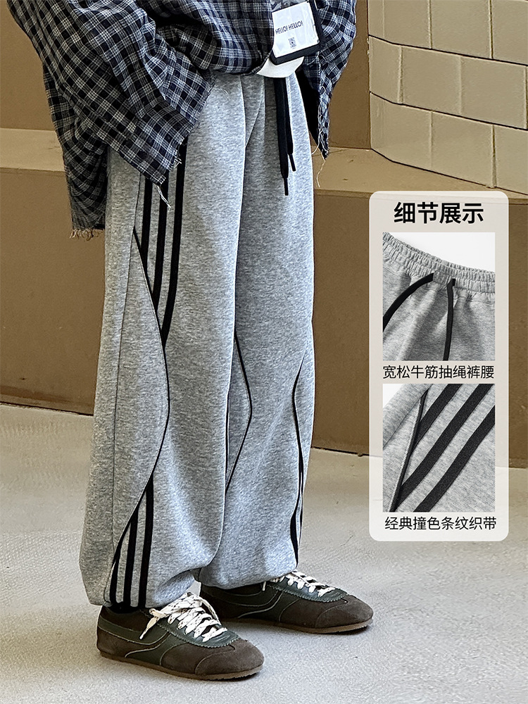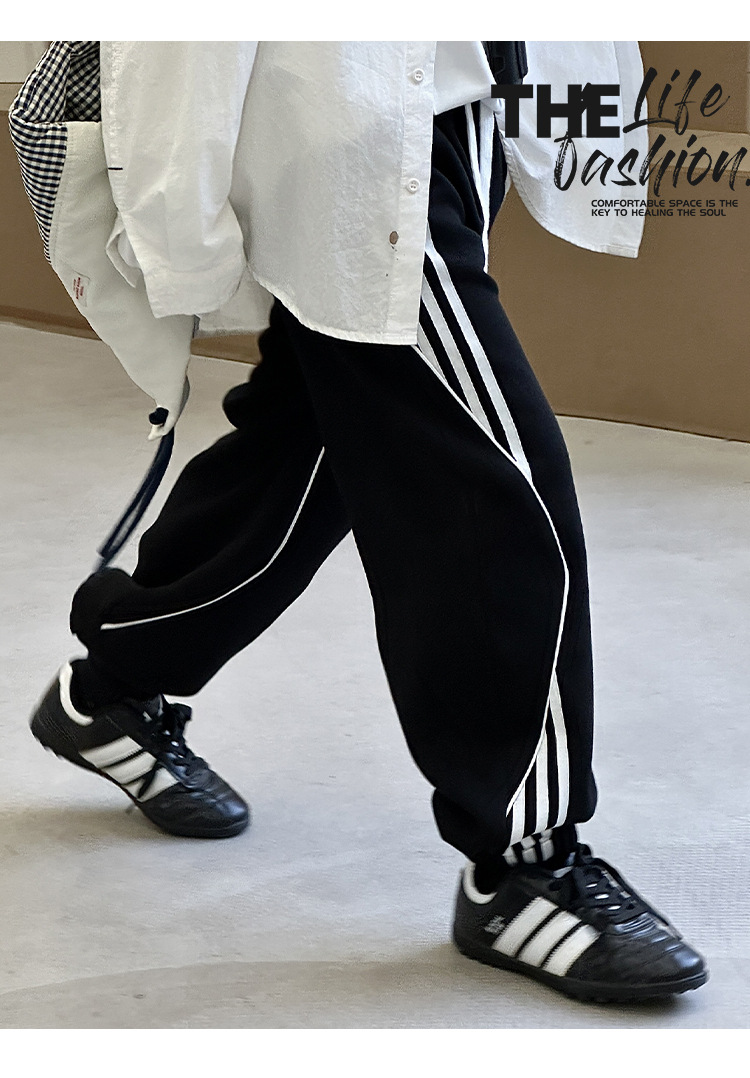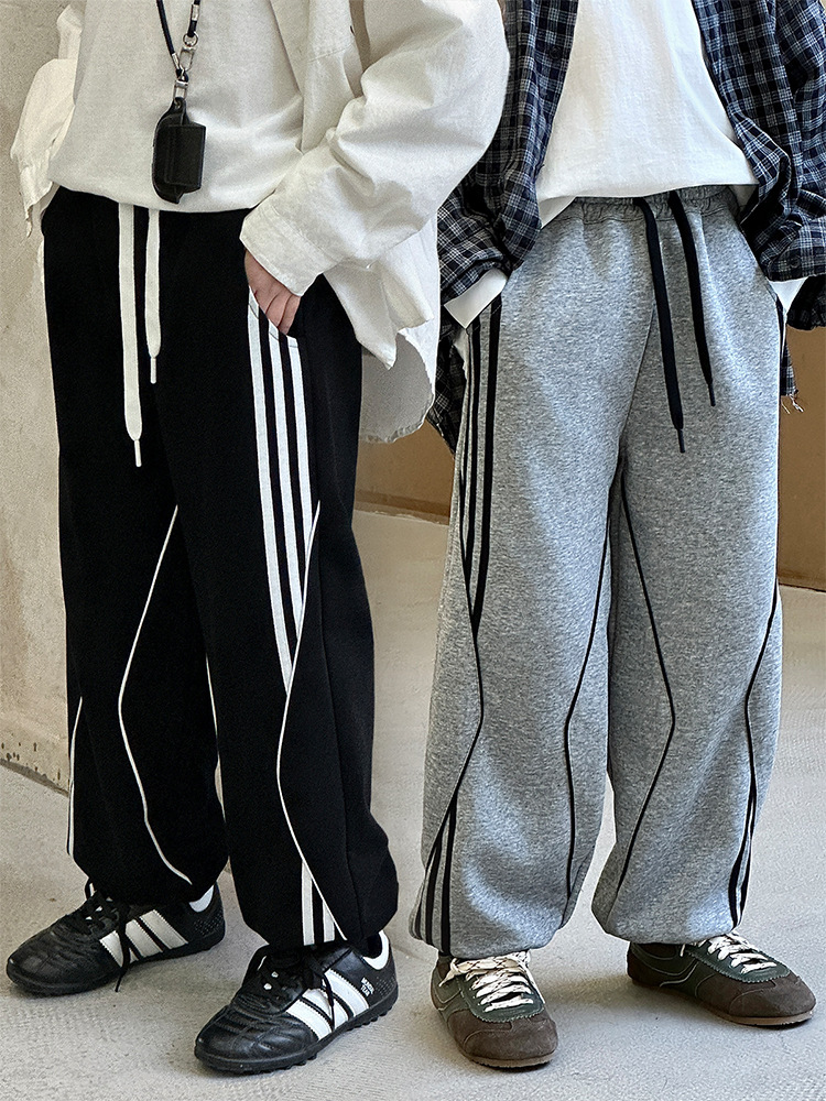 어린이 니트 바지 2025 봄 새 소년 바지 대비 컬러 리본 풀 로프 느슨한 니트 바지스토어 가기
