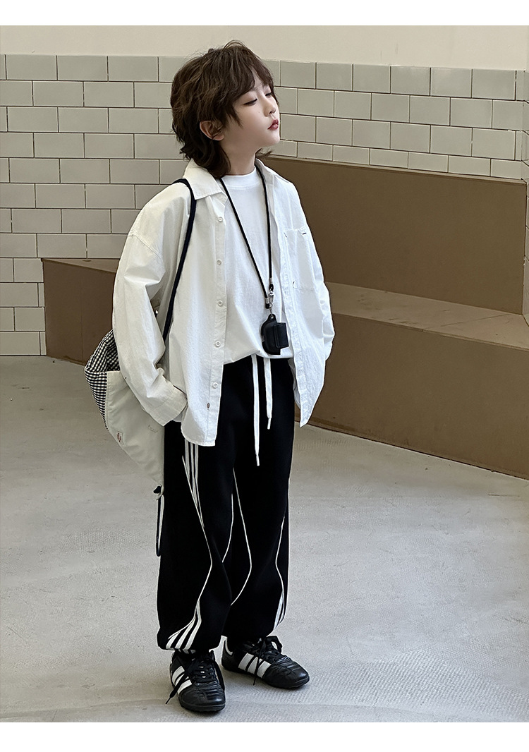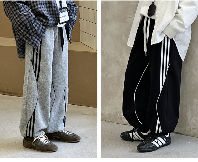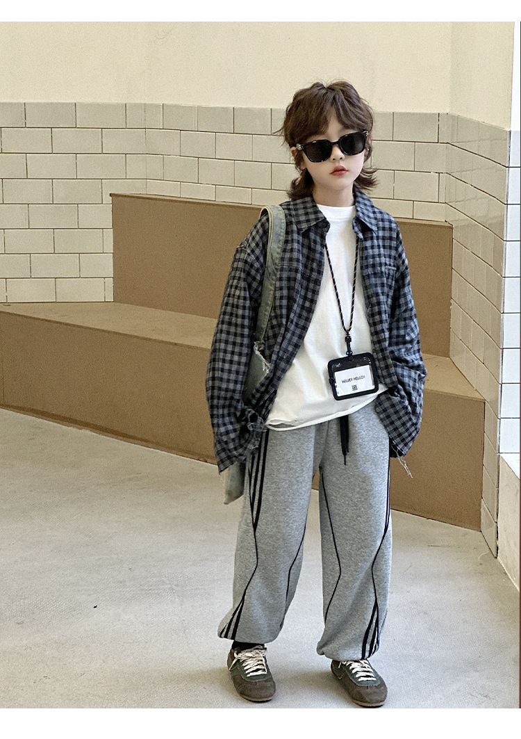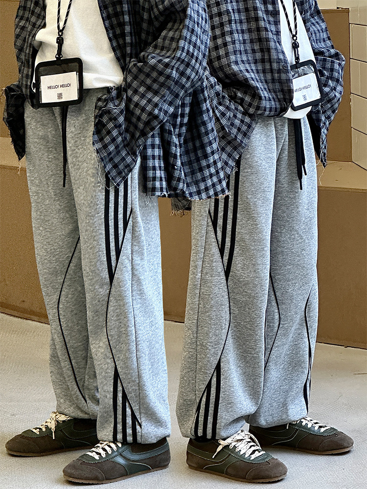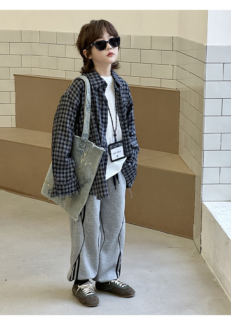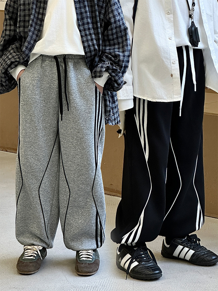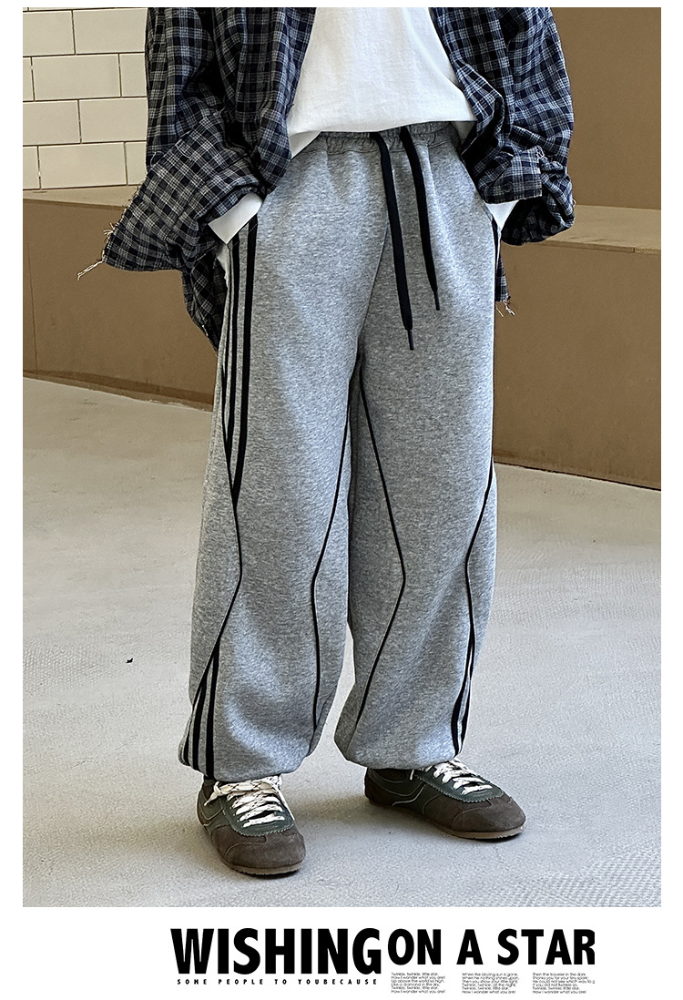 어린이 니트 바지 2025 봄 새 소년 바지 대비 컬러 리본 풀 로프 느슨한 니트 바지스토어 가기