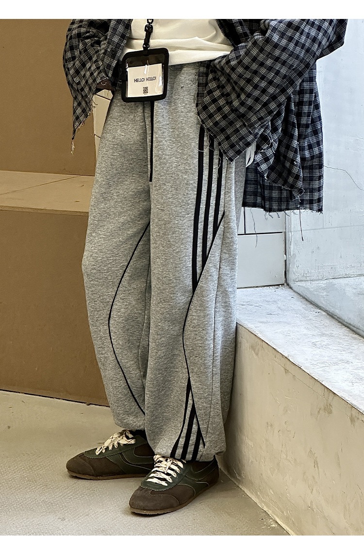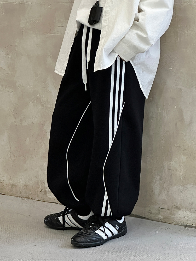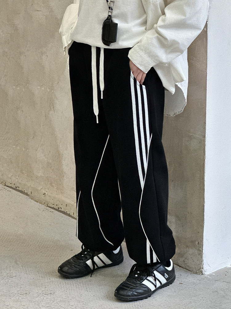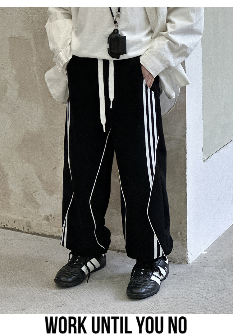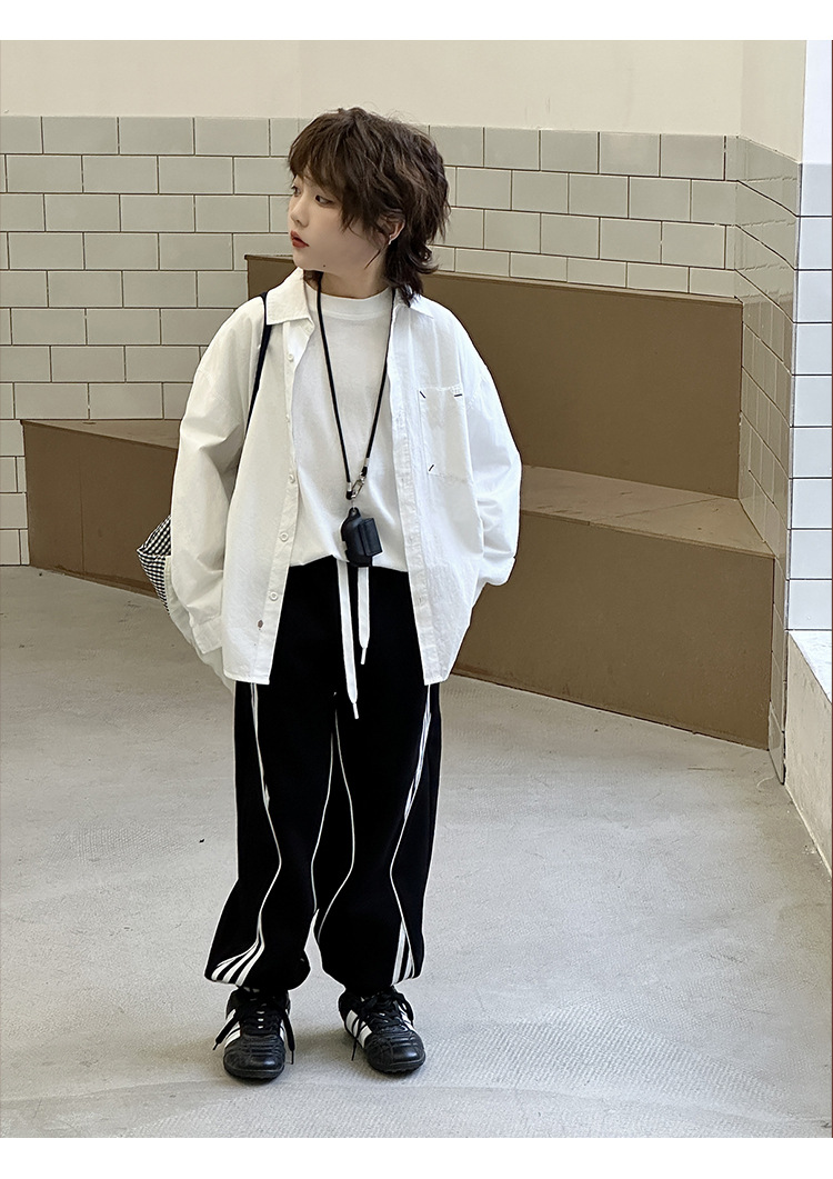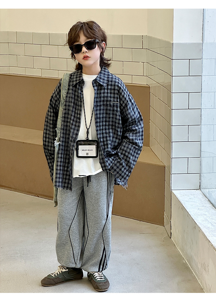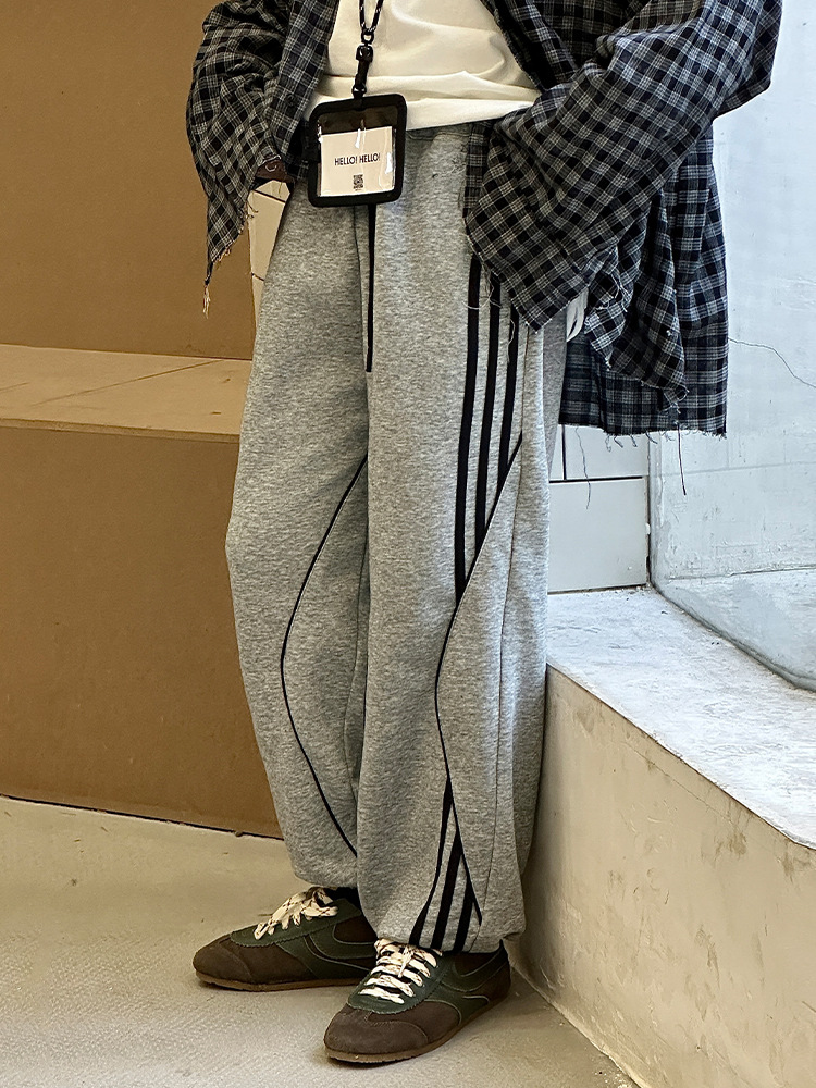 어린이 니트 바지 2025 봄 새 소년 바지 대비 컬러 리본 풀 로프 느슨한 니트 바지스토어 가기
