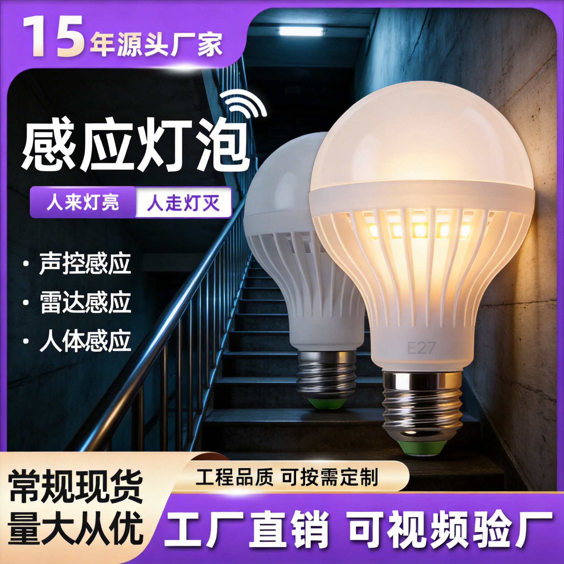 복도 LED 전구는 맞춤형 유도 전구, 유도 램프, 지능형 레이더, 소리 및 조명 제어 에너지 절약 전구를 지원합니다.스토어 가기