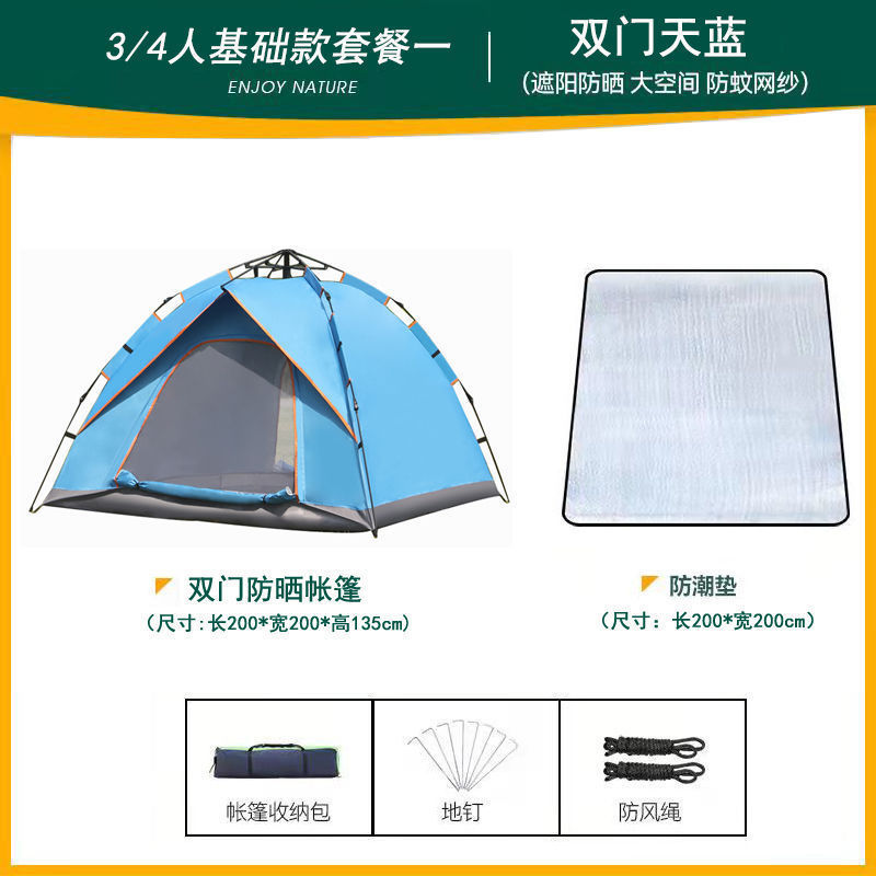 • 자동 3-4인용 문 2개와 창문 2개 하늘색 + 방습 패드 + 3인용 공기주입식 패드