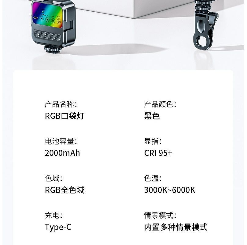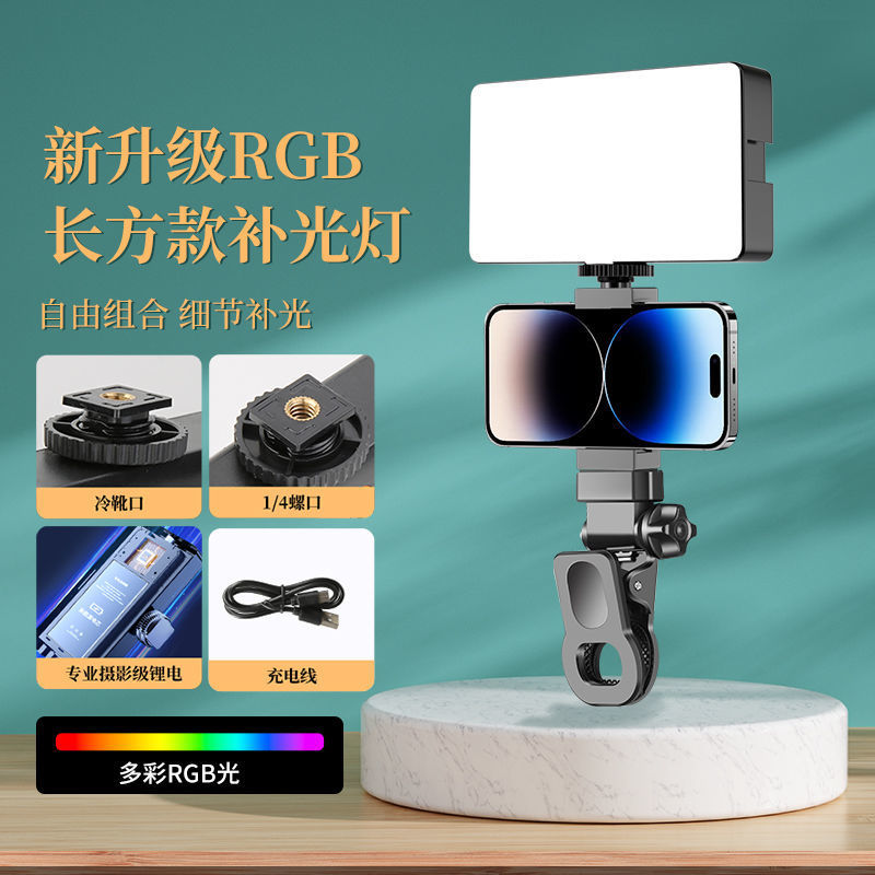 • [업그레이드된 대형 RGB 풀 컬러 충전 W 모델] 필 라이트 + 클립