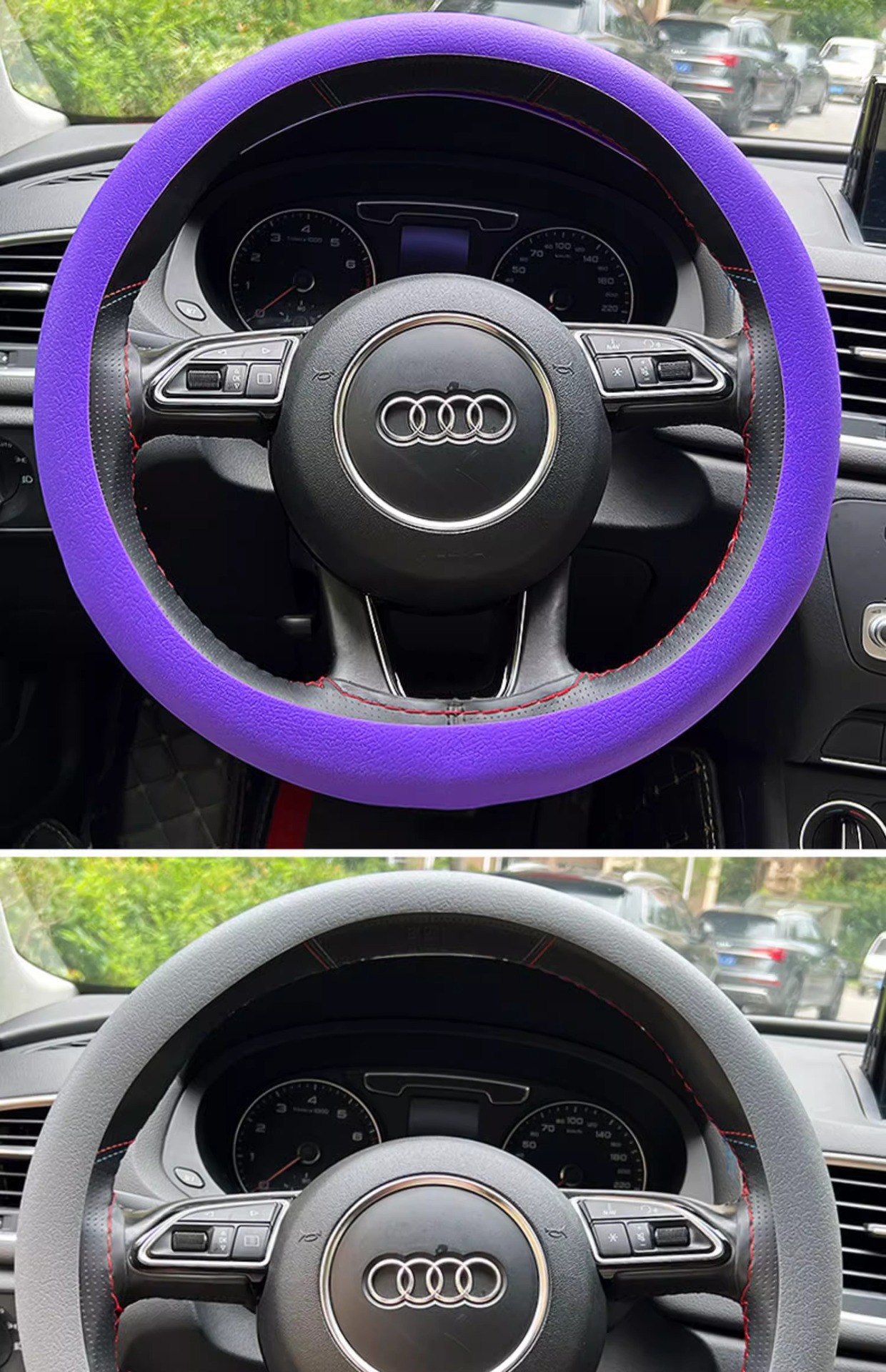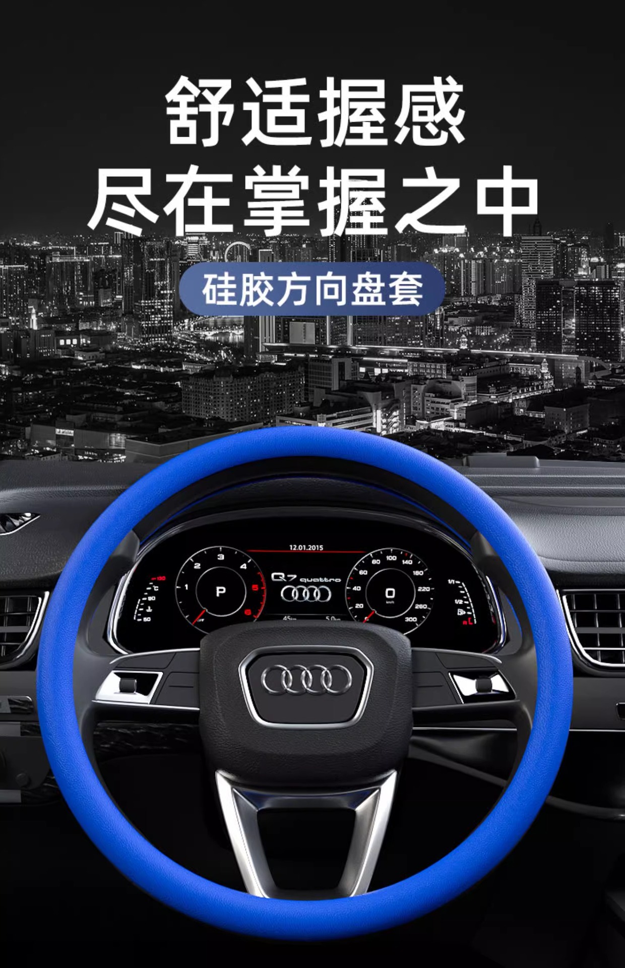 자동차 여름 얼음 느낌 초박형 스티어링 휠 커버 미끄럼 방지 실리콘 실리콘 패턴 남성과 여성을위한 올 시즌 범용 핸들 바 커버 소프트