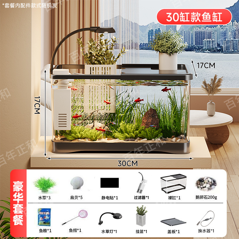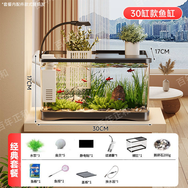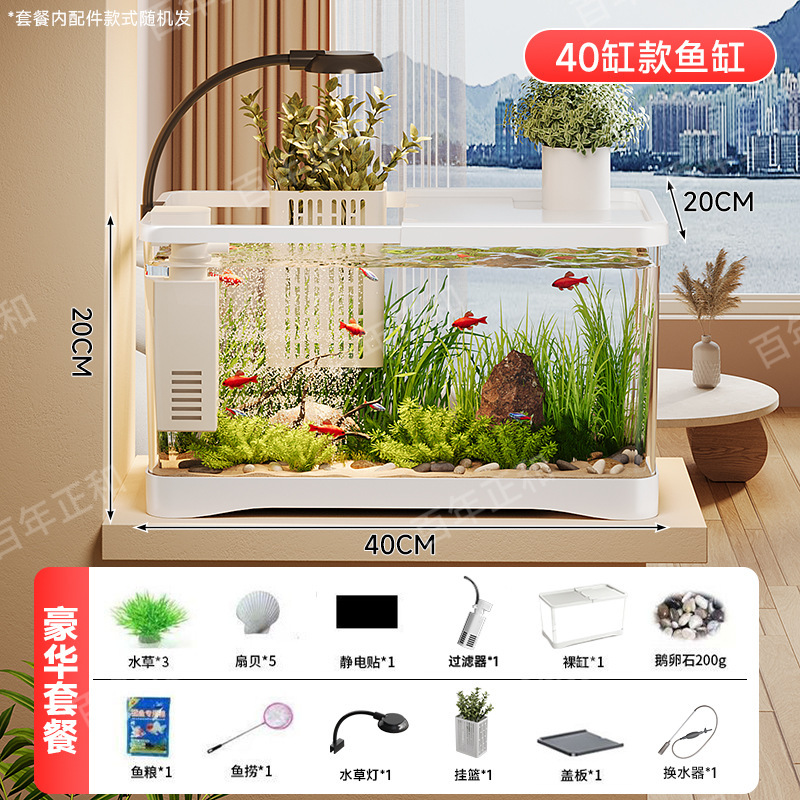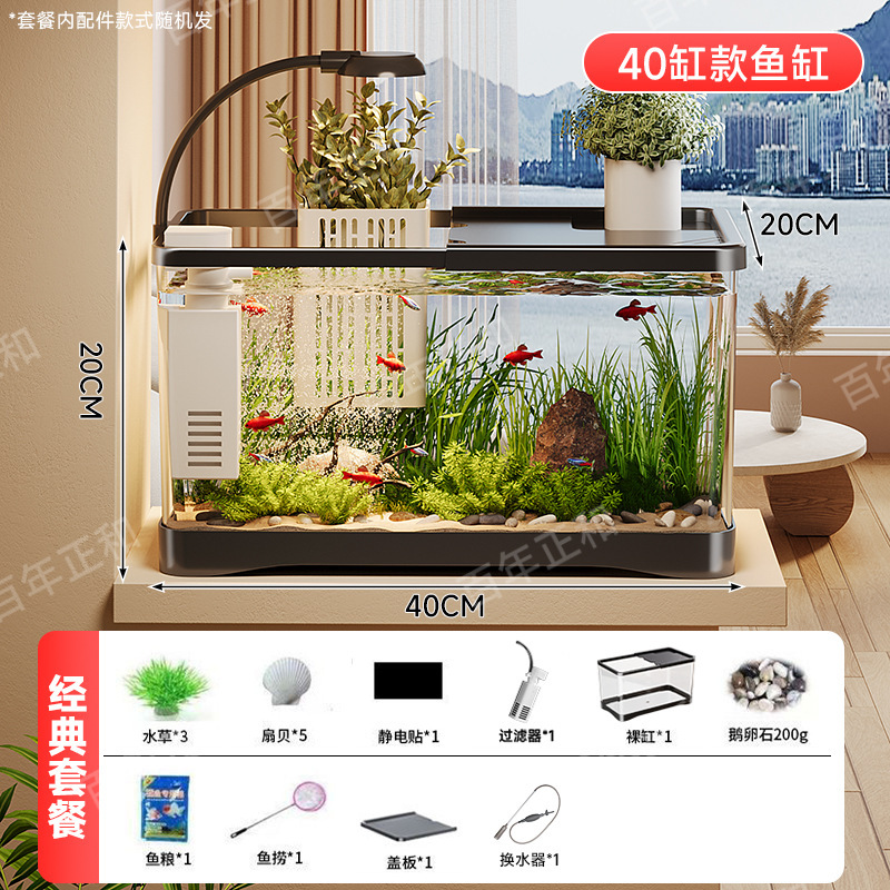 물고기 탱크 작은 거실 2024 새로운 필터 산소 발생기 가정용 조경 전체 세트 생태 데스크탑 물고기 탱크스토어 가기