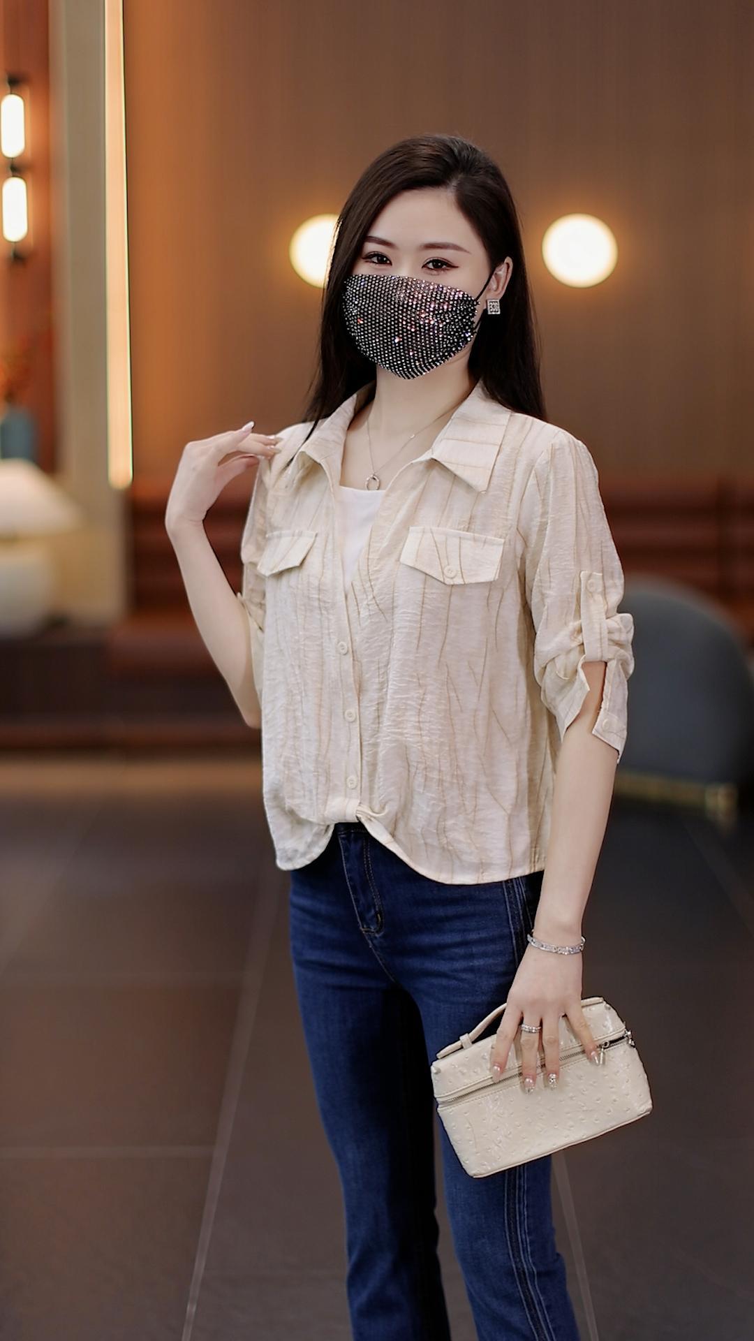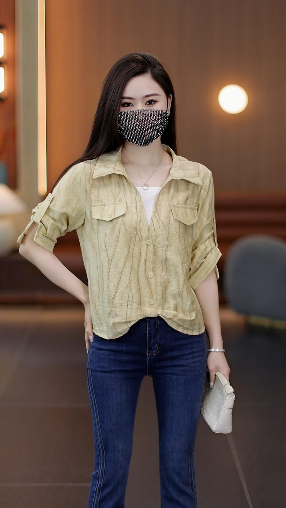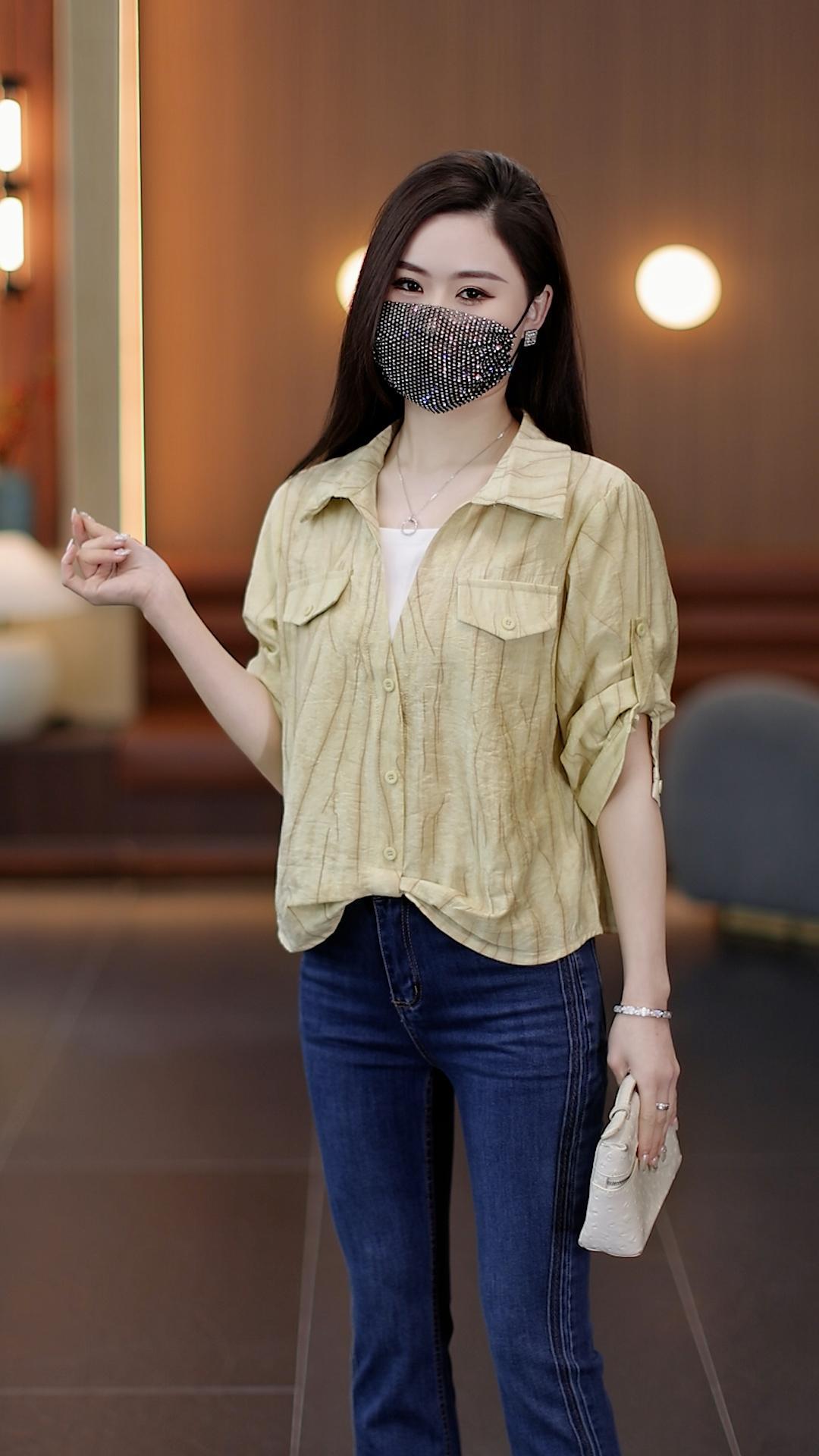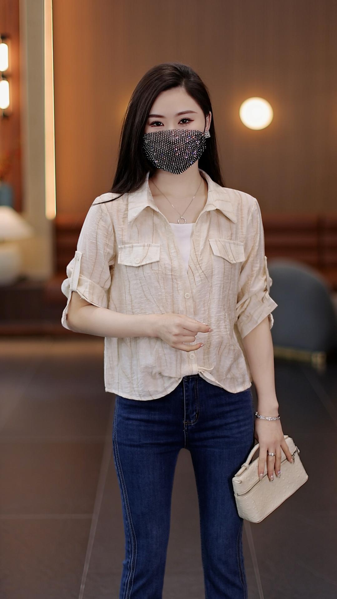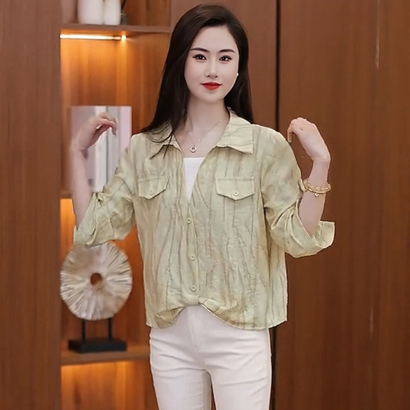 가짜 투피스 올매치 긴팔 쉬폰 셔츠 여자 캐주얼 세븐 슬리브 탑 봄과 여름 새로운 대외 무역 인쇄 셔츠스토어 가기