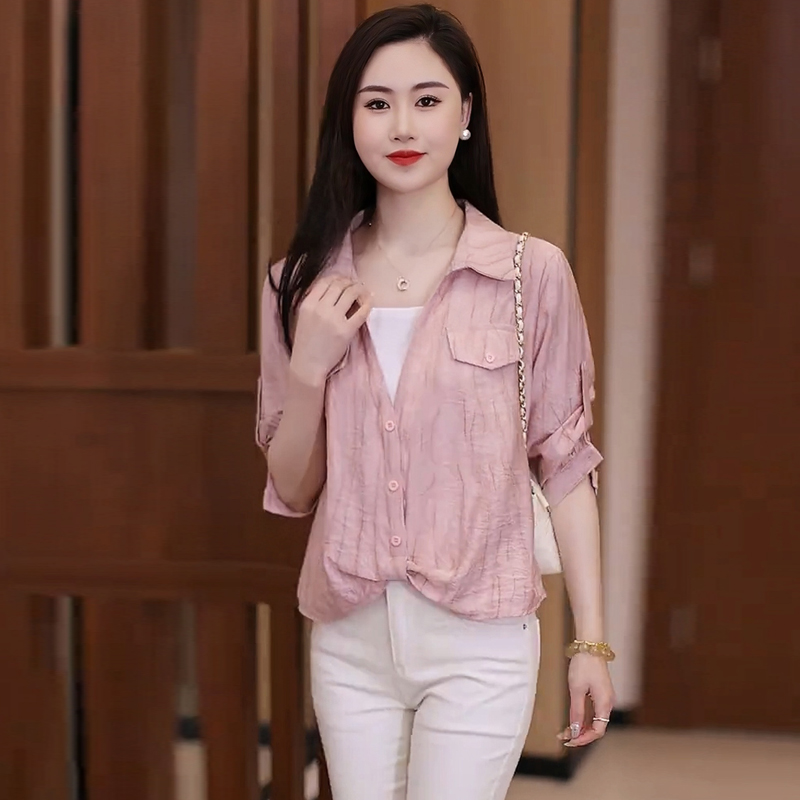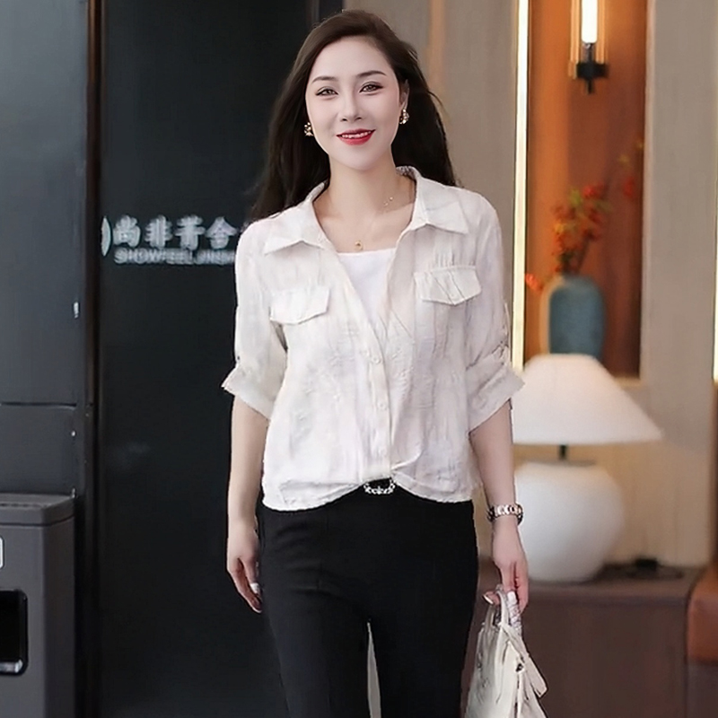 가짜 투피스 올매치 긴팔 쉬폰 셔츠 여자 캐주얼 세븐 슬리브 탑 봄과 여름 새로운 대외 무역 인쇄 셔츠