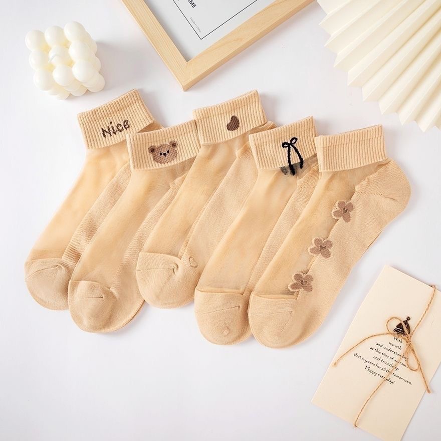 양말 여성 여름 얇은 짧은 양말 크리스탈 스타킹 조커 캐주얼 인터넷 인기있는 얇은 피부 컬러 유리 실크 양말 도매스토어 가기