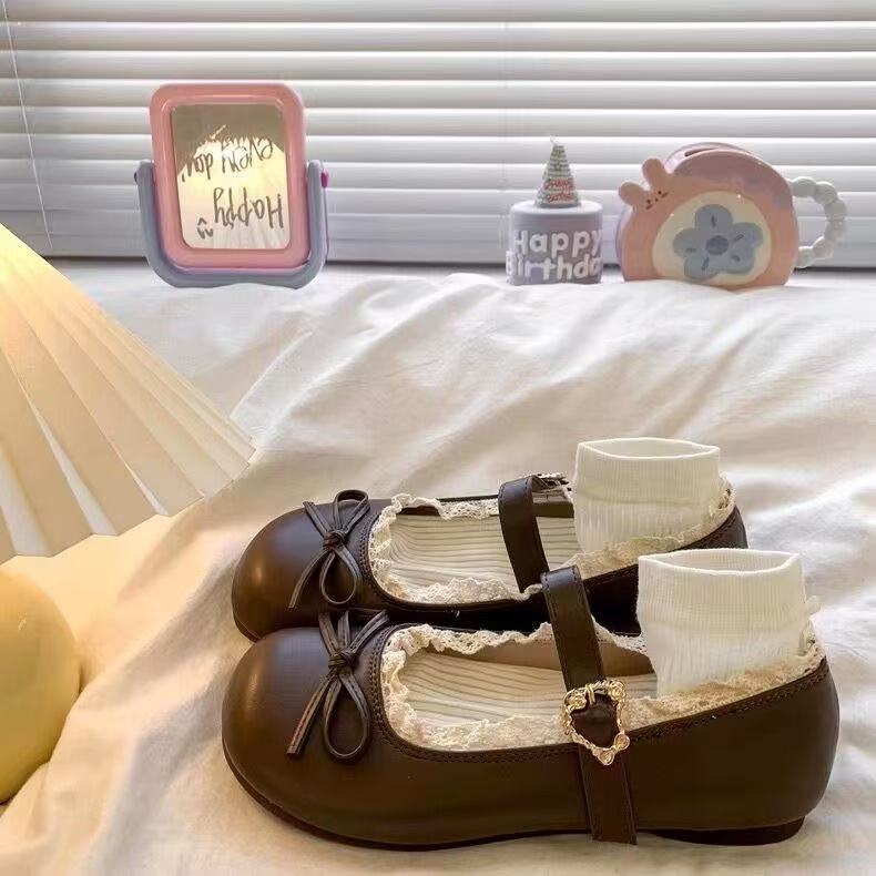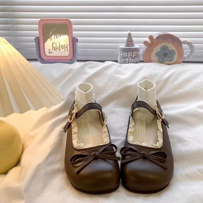 라운드 토 레트로 활 플랫 가죽 신발 여성의 2025 새로운 봄 블랙 프렌치 소프트 하단 메리 제인 신발스토어 가기