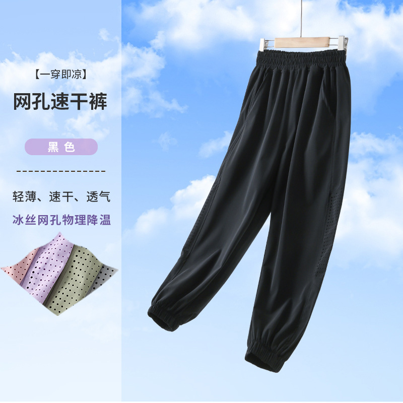 소녀 바지 여름 얇은 얼음 실크 빠른 건조 바지 어린이 캐주얼 스포츠 바지 큰 어린이 모기 방지 바지 느슨한 바지