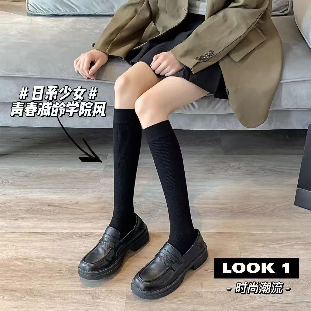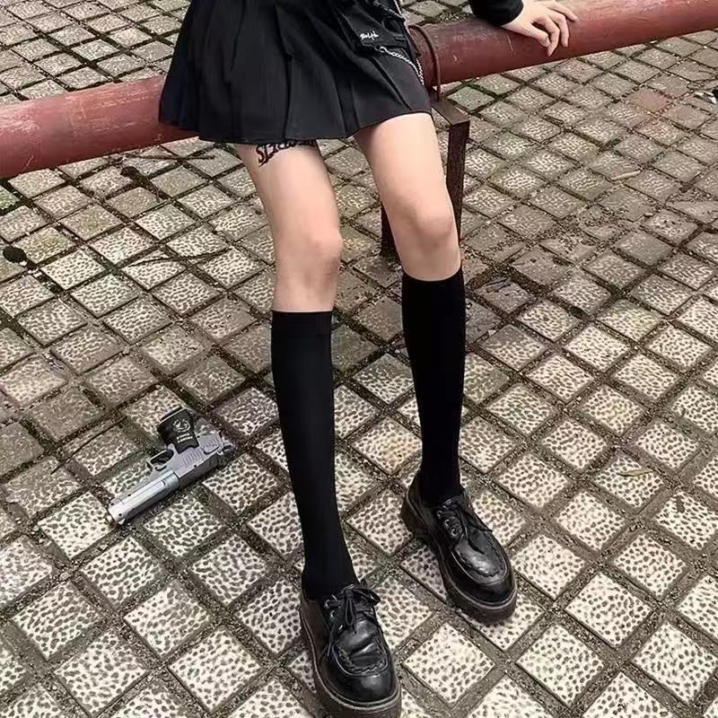 화이트 양말 여성용 종아리 양말 봄 가을 얇은 중간 길이 양말 일본식 jk 압박 슬림 레그 롱 양말 무릎 위 중간 길이 양말스토어 가기