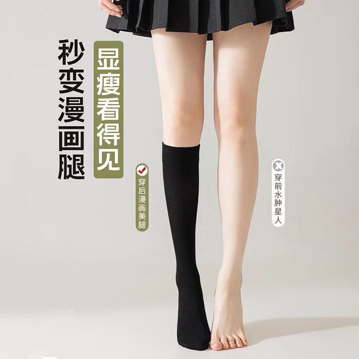 화이트 양말 여성용 종아리 양말 봄 가을 얇은 중간 길이 양말 일본식 jk 압박 슬림 레그 롱 양말 무릎 위 중간 길이 양말