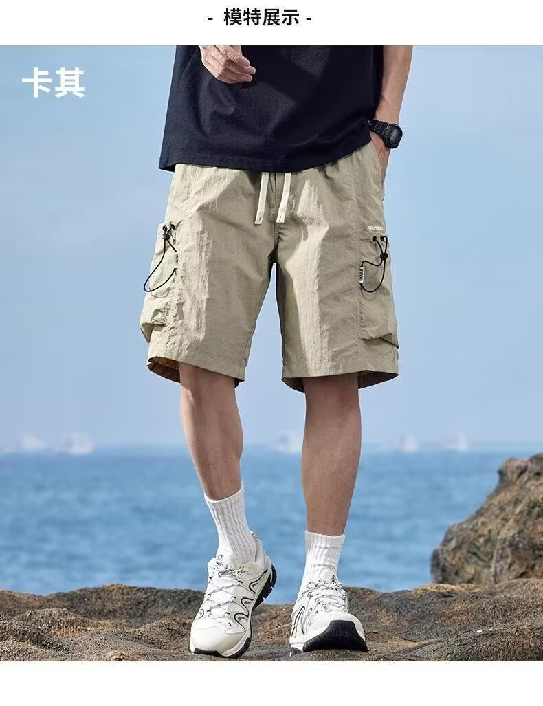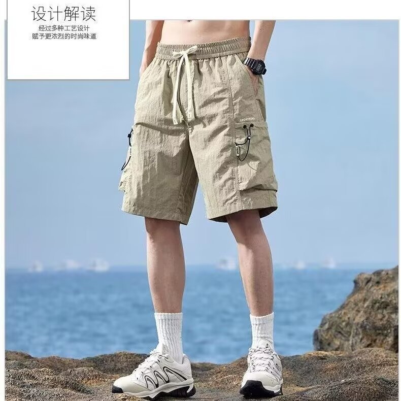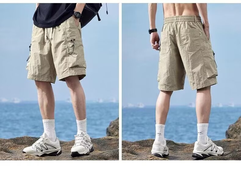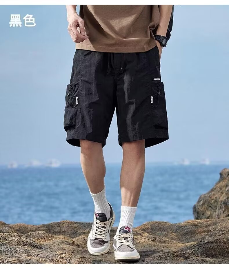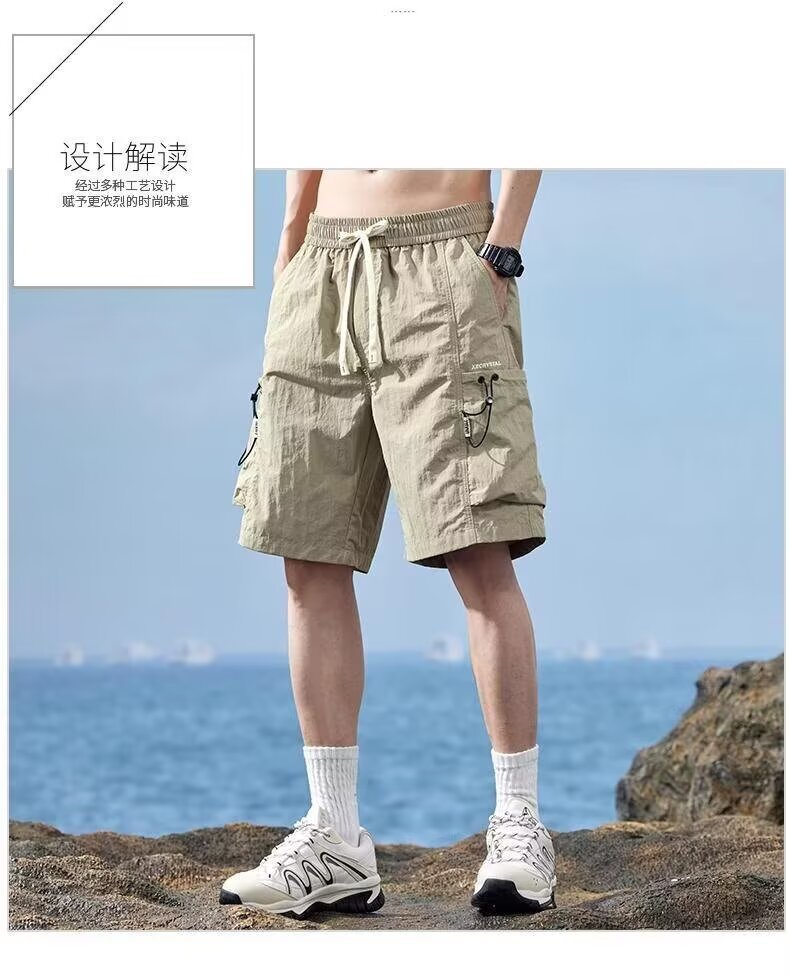 여름 얇은 작업 반바지 남자의 2025 새로운 얼음 실크 빠른 건조 느슨한 큰 포켓 중간 길이 바지 5 점 캐주얼 바지스토어 가기
