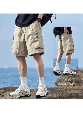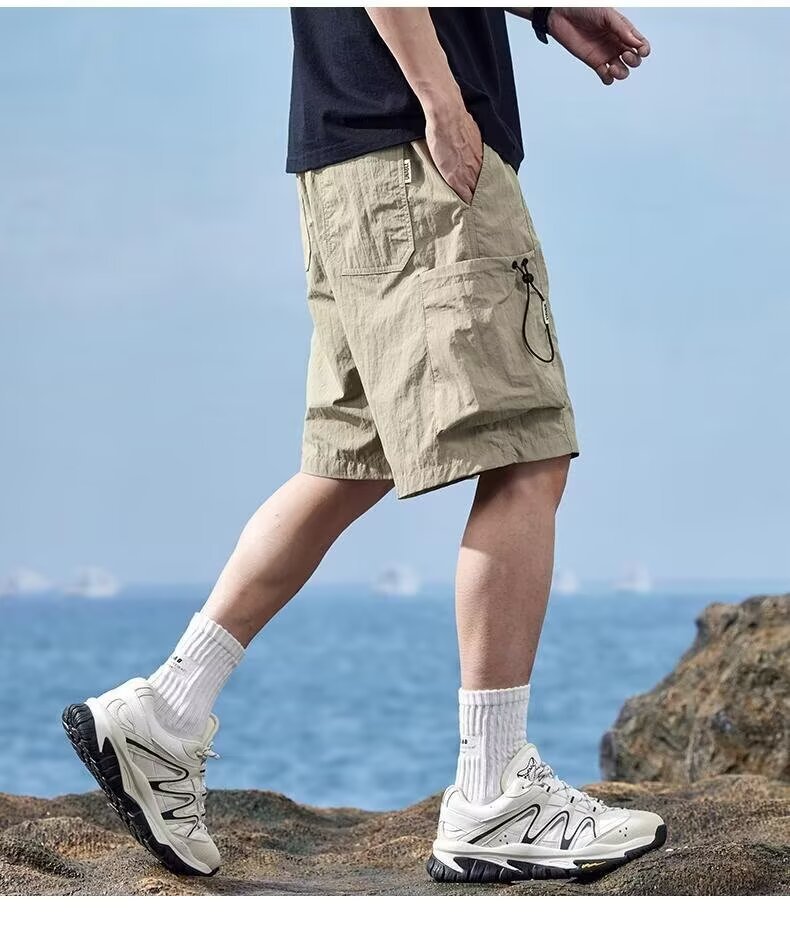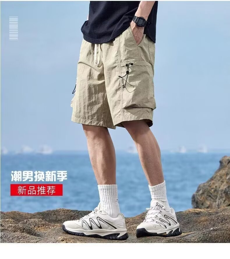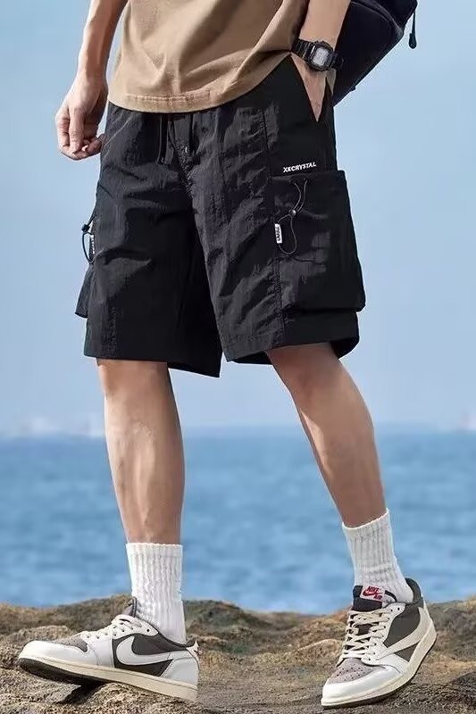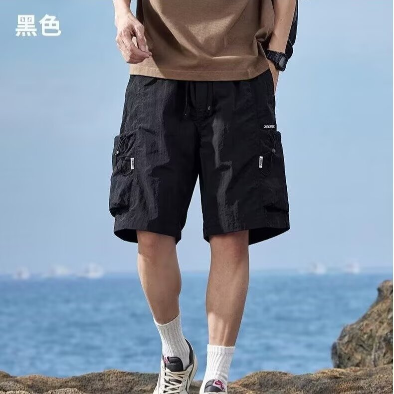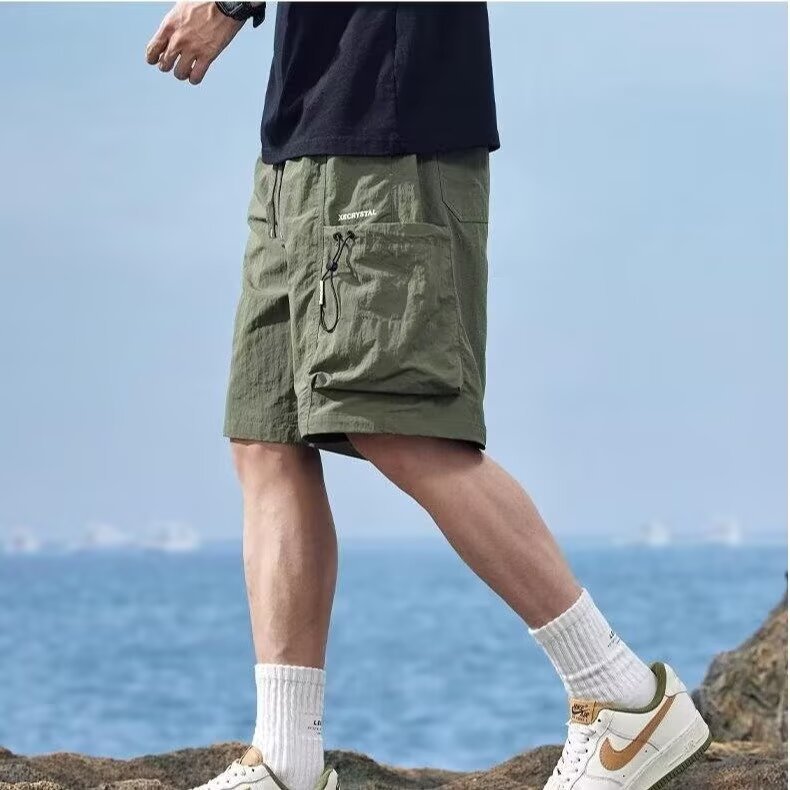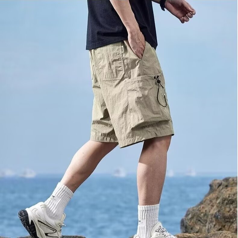 여름 얇은 작업 반바지 남자의 2025 새로운 얼음 실크 빠른 건조 느슨한 큰 포켓 중간 길이 바지 5 점 캐주얼 바지스토어 가기