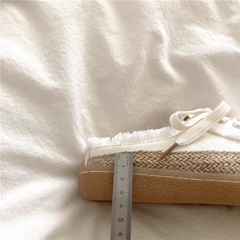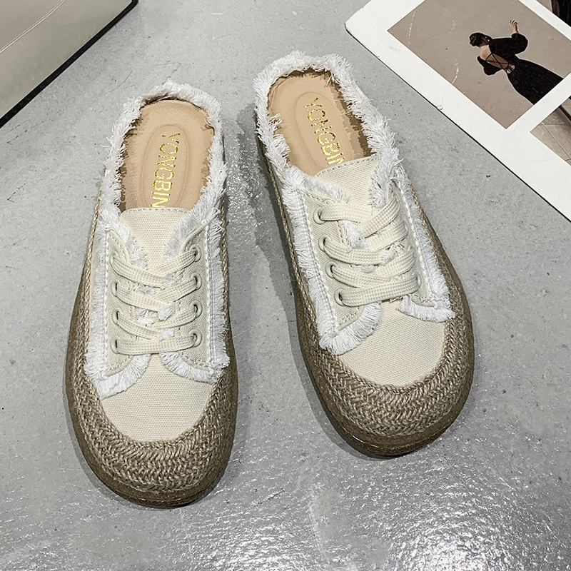 Q-Shed Jelly Bottom 새로운 도착 게으른 휴가 스타일 하프 슬리퍼 캔버스 슈즈 여성용 Summer Ins 탑 커버 게으른 샌들과 슬리퍼