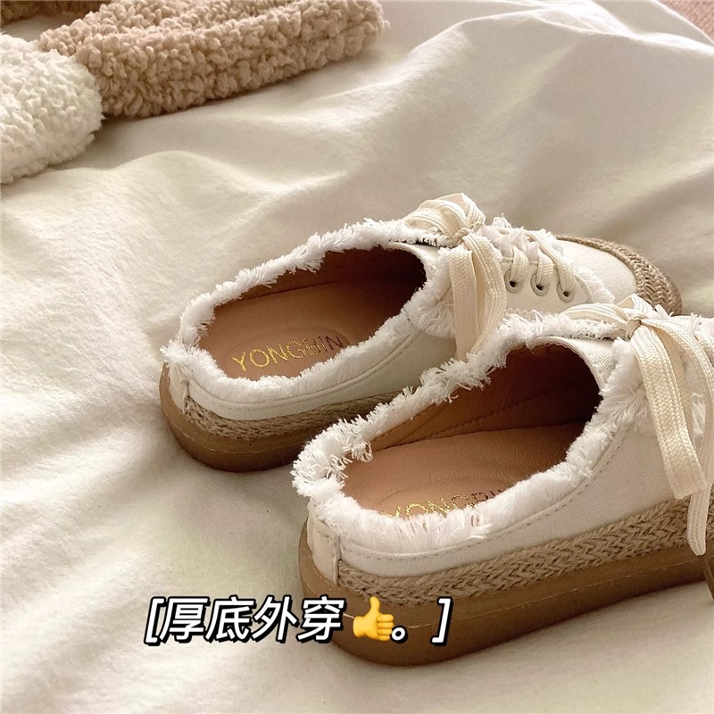 Q-Shed Jelly Bottom 새로운 도착 게으른 휴가 스타일 하프 슬리퍼 캔버스 슈즈 여성용 Summer Ins 탑 커버 게으른 샌들과 슬리퍼스토어 가기
