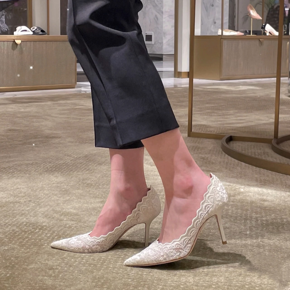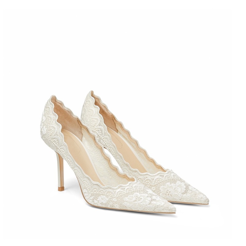 화이트 하이힐 웨딩 슈즈 여성의 2025 봄 새로운 뾰족한 스틸레토 자수 레이스 Xiuhe 웨딩 원피스 신부 신발스토어 가기