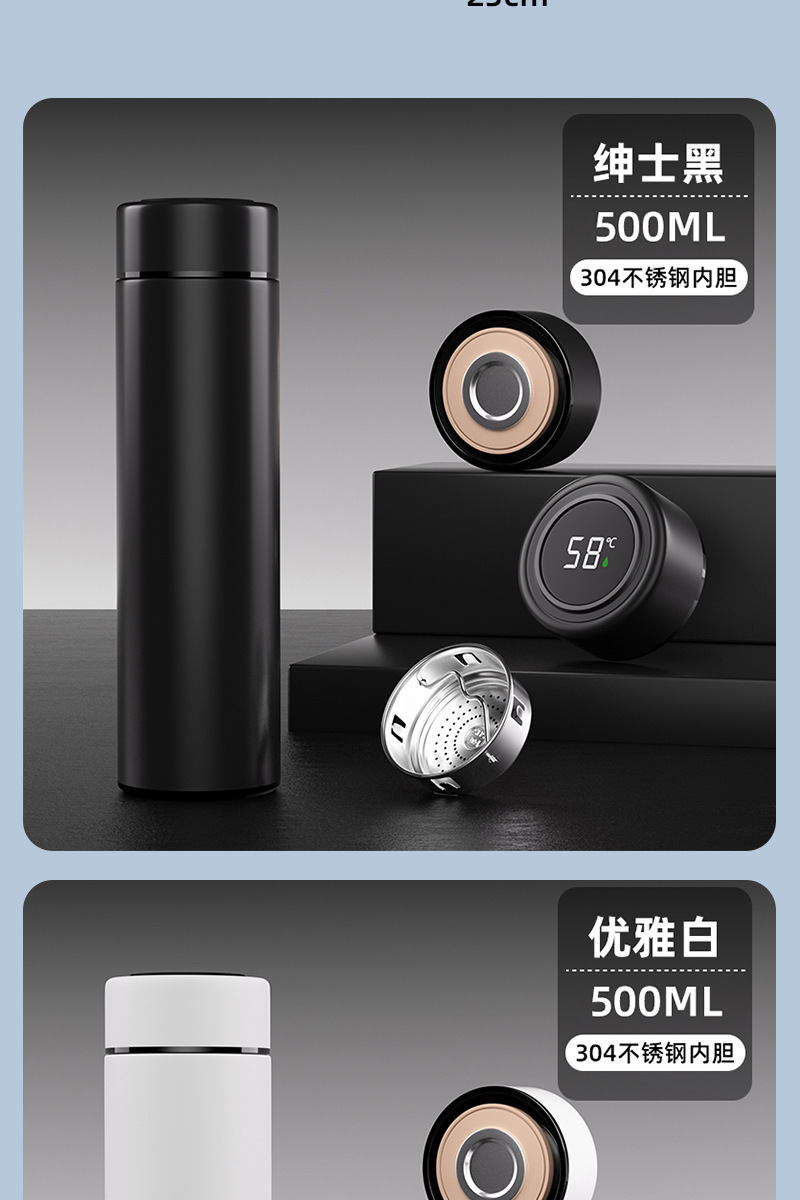지능형 온도 측정 보온병 컵 LED 디스플레이 온도 물 컵 304 스테인레스 스틸 보온병 컵 선물 컵은 로고를 설정할 수 있습니다