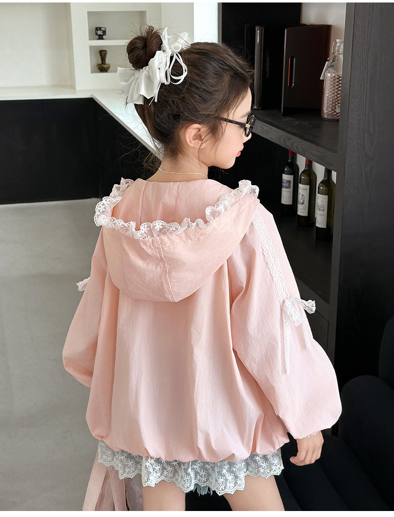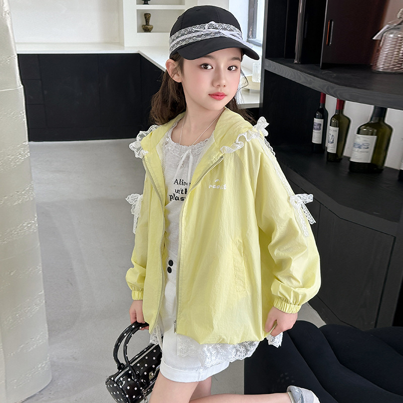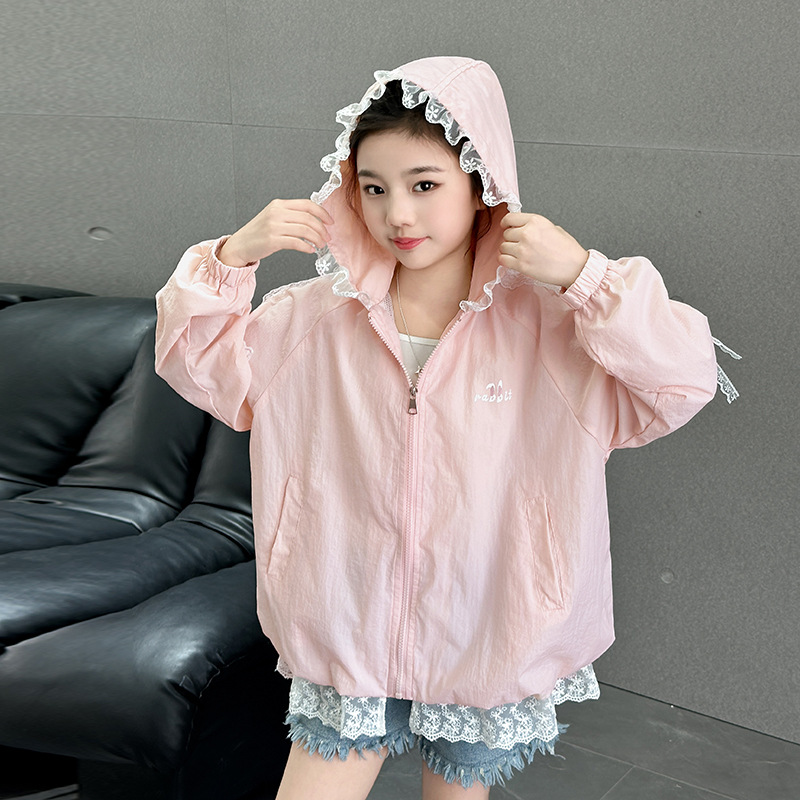 소녀 여름 선 스크린 코트 2025 새로운 서양 스타일 유행 어린이 후드 큰 어린이 여름 얇은 선 스크린 코트
