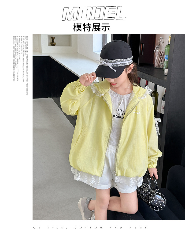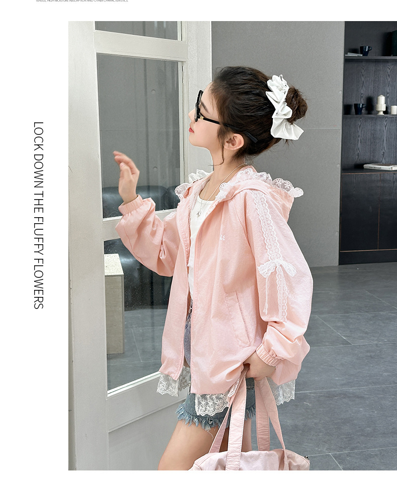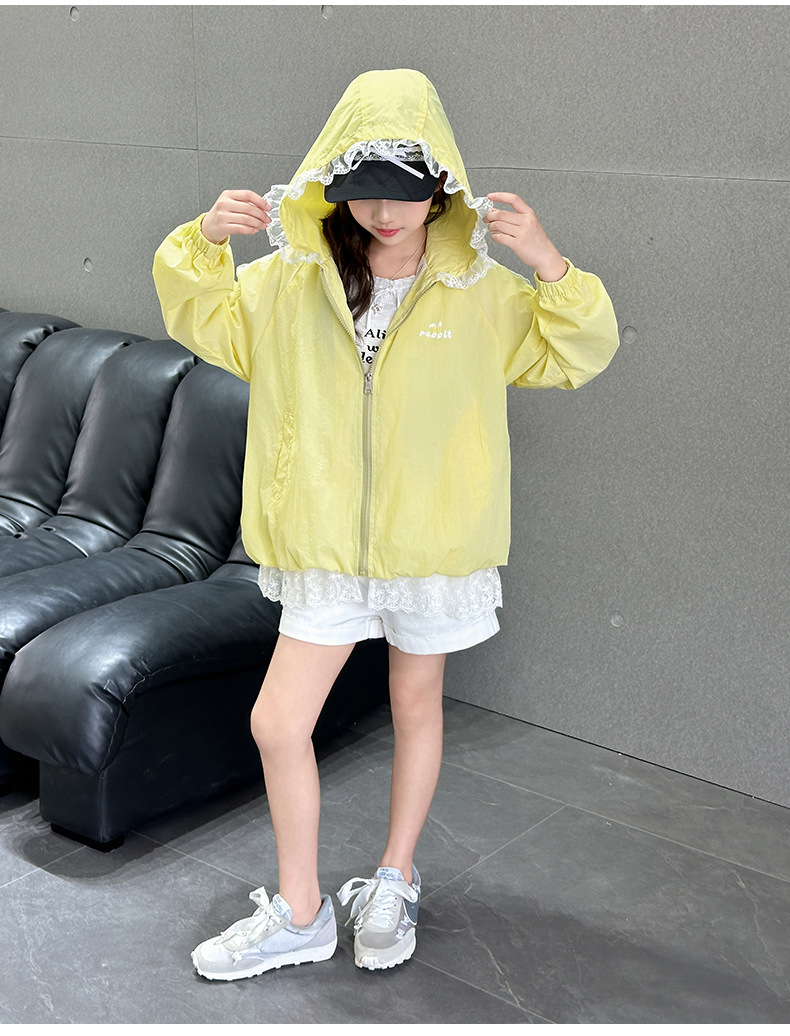 소녀 여름 선 스크린 코트 2025 새로운 서양 스타일 유행 어린이 후드 큰 어린이 여름 얇은 선 스크린 코트스토어 가기