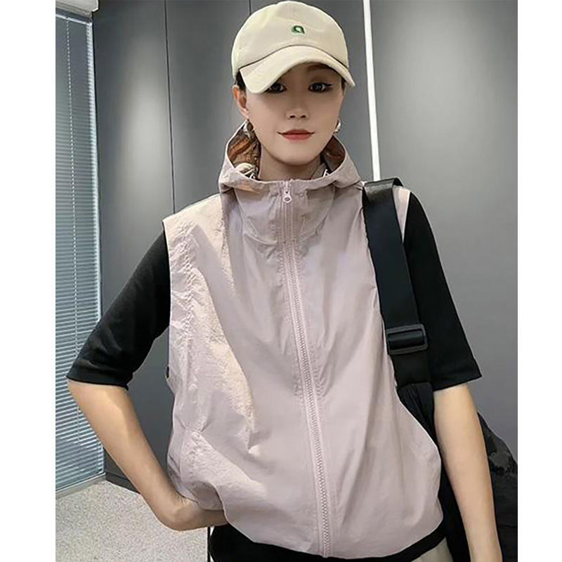 여름 통기성 봄과 여름 얇은 후드 지퍼 여성 조끼 새로운 스타일 태양 보호 패션 올 매치 태양 보호 의류스토어 가기