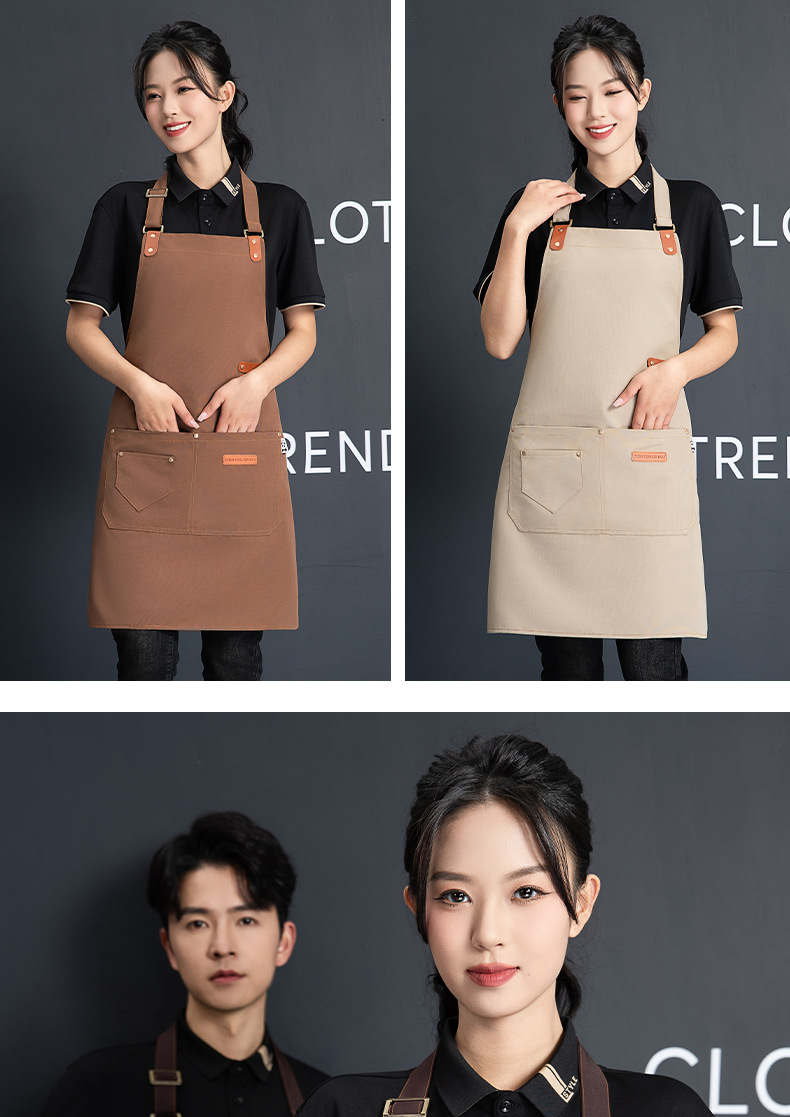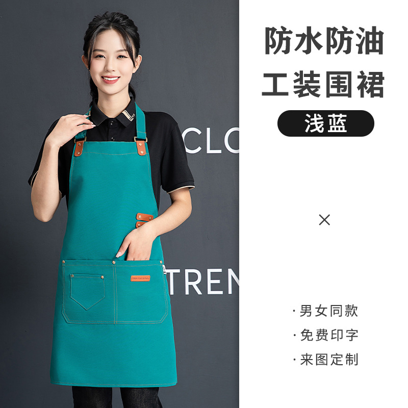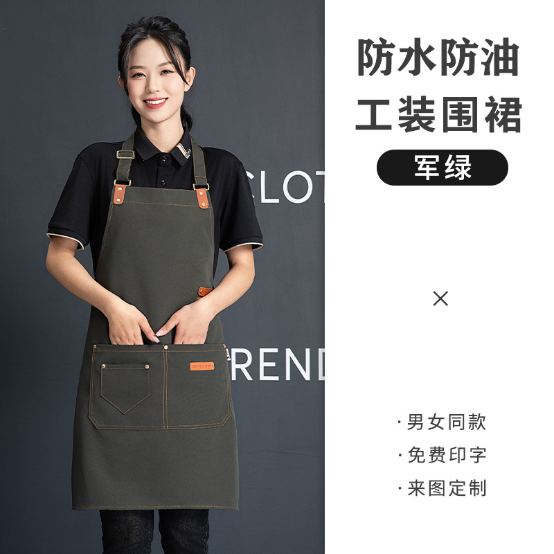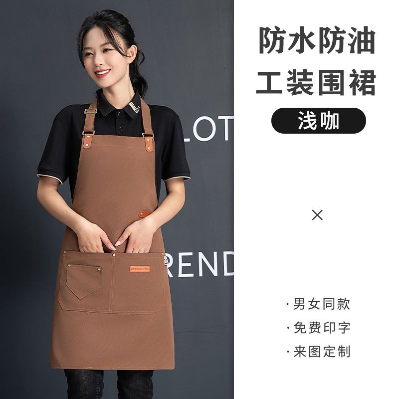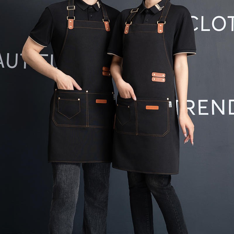 재고 도매 캔버스 스트랩 앞치마 맞춤 케이터링 방수 주방 우유 차 가게 바리 스타 작업 옷 앞치마 여성