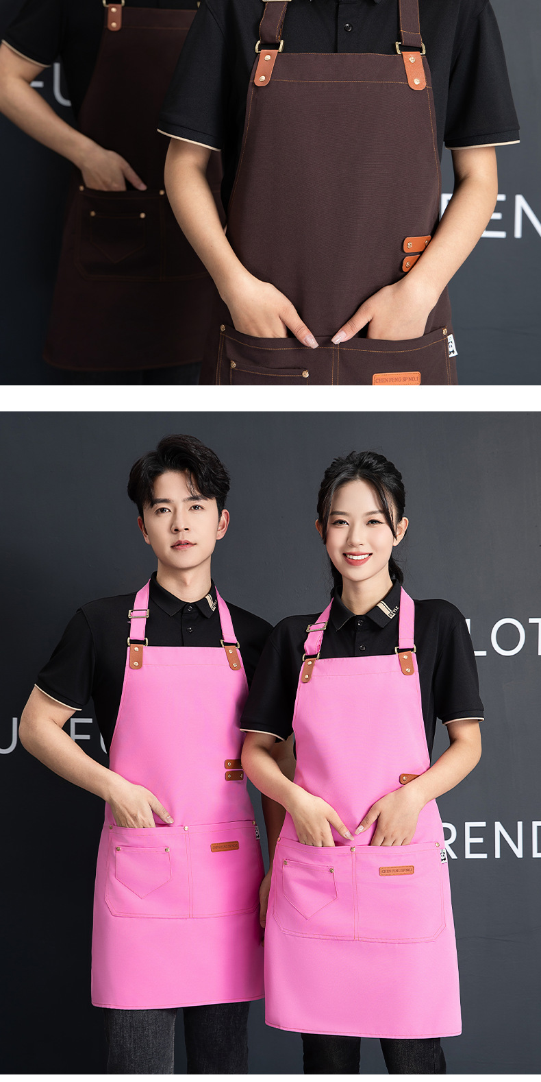 재고 도매 캔버스 스트랩 앞치마 맞춤 케이터링 방수 주방 우유 차 가게 바리 스타 작업 옷 앞치마 여성스토어 가기