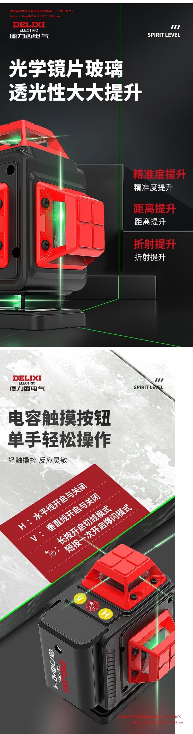 Delixi 전기 레벨 미터 강한 빛 12 라인 녹색 빛 고정밀 야외 벽걸이 형 적외선 레이저 수위 측정기스토어 가기