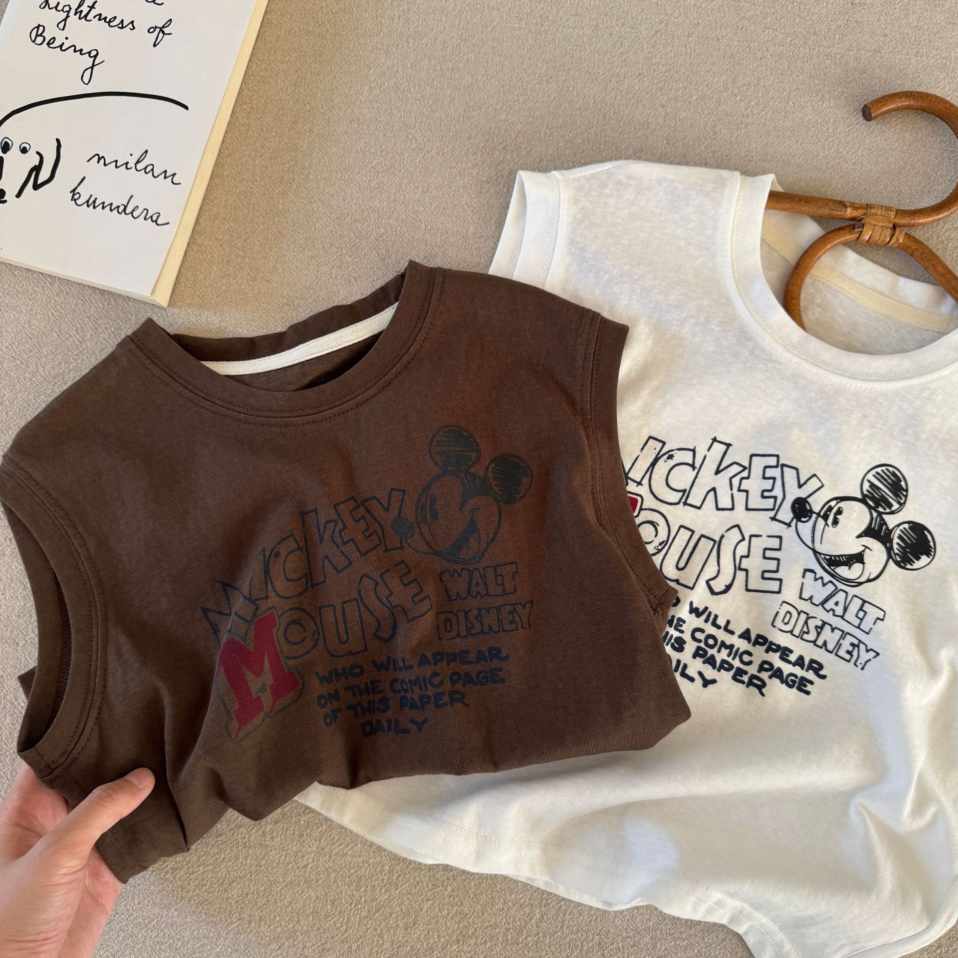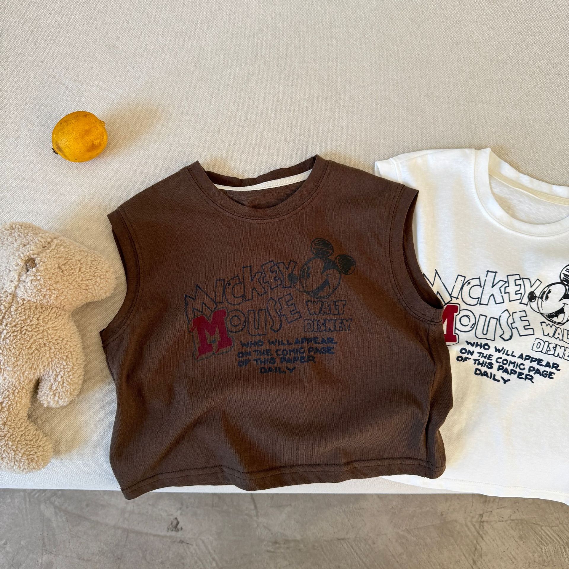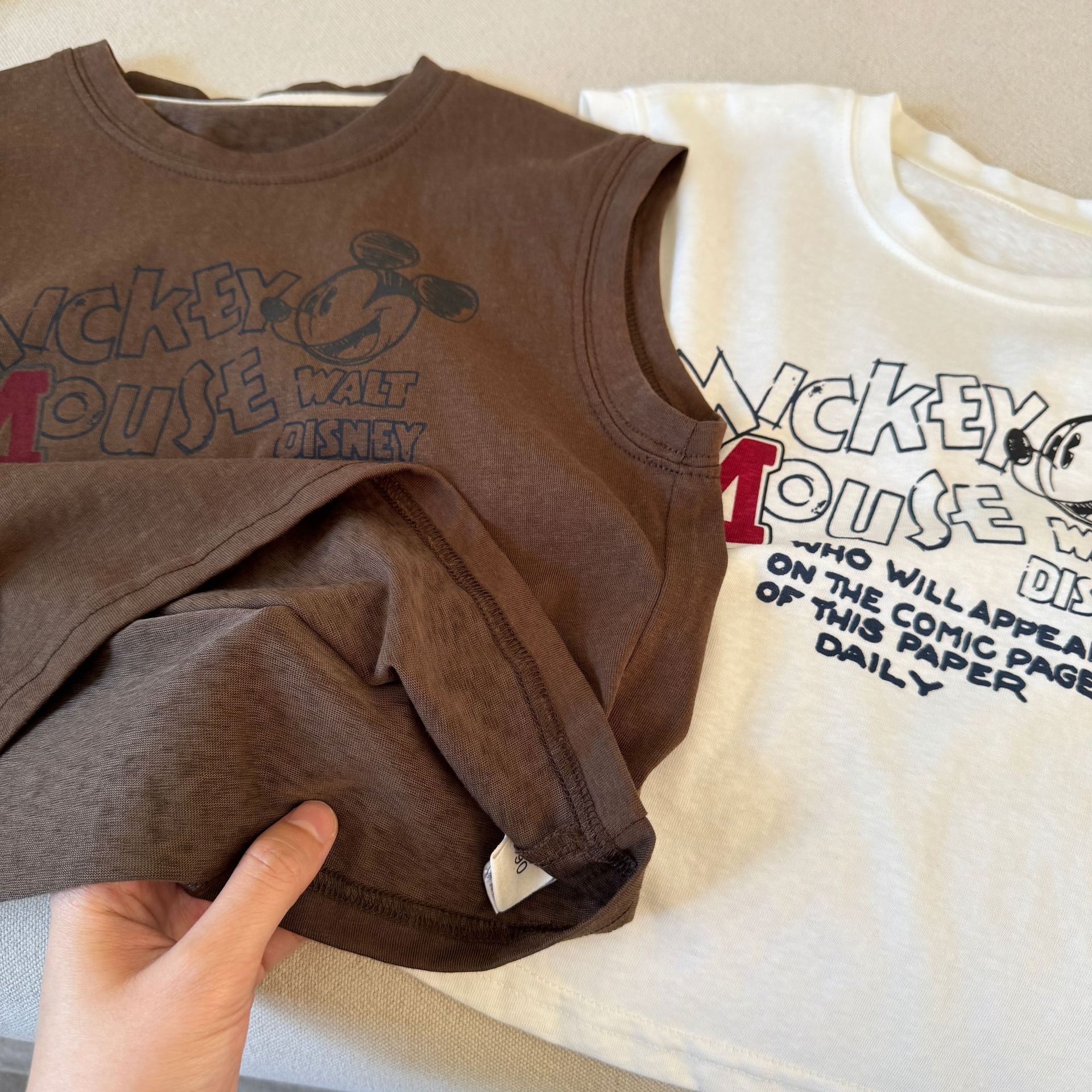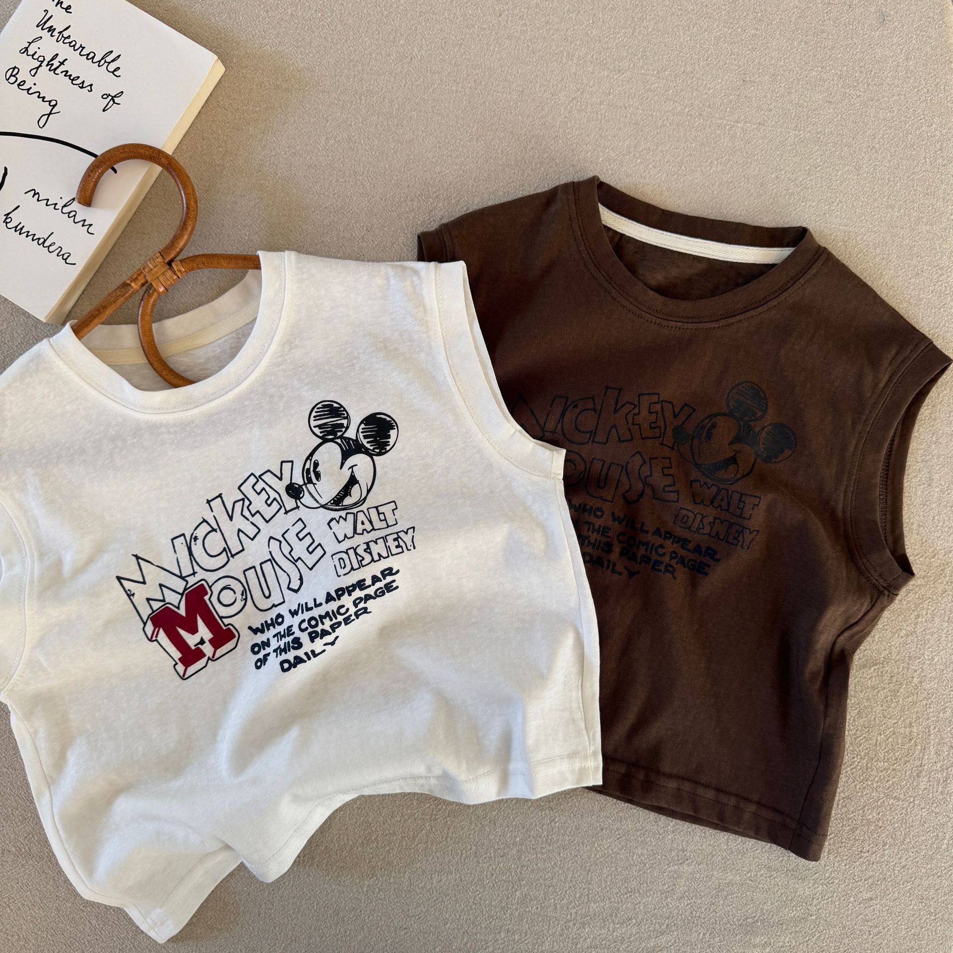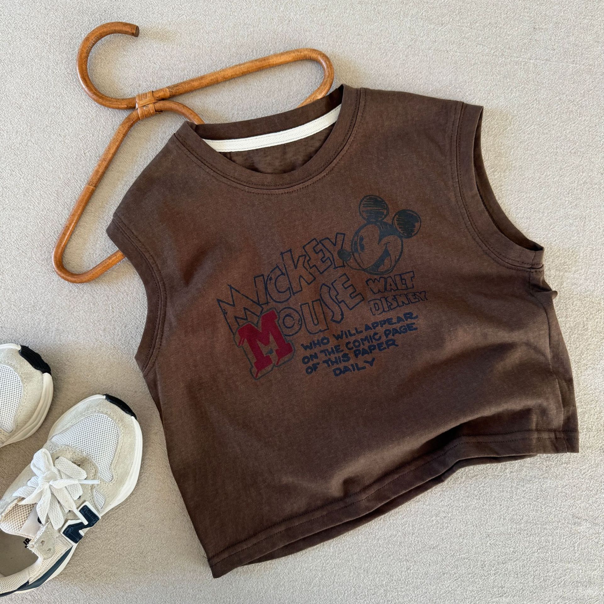 어린이 민소매 티셔츠 2025 여름 새 소년과 소녀 편지 만화 인쇄 캐주얼 탑 트렌디 쿨 아동복스토어 가기