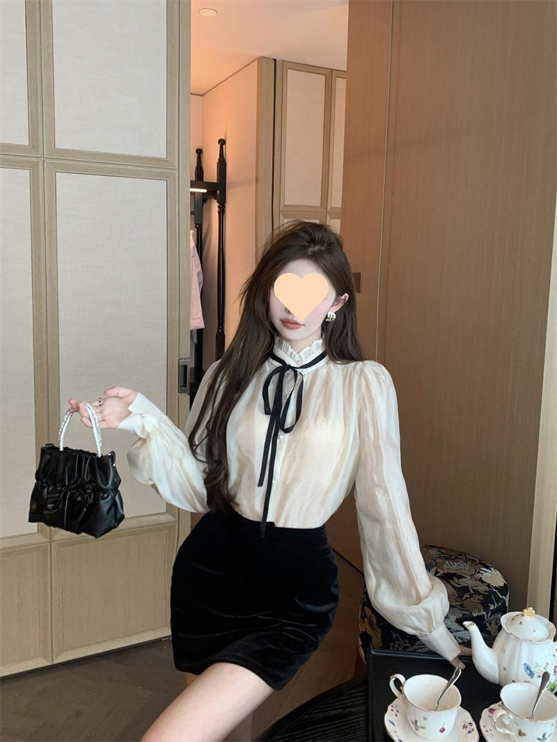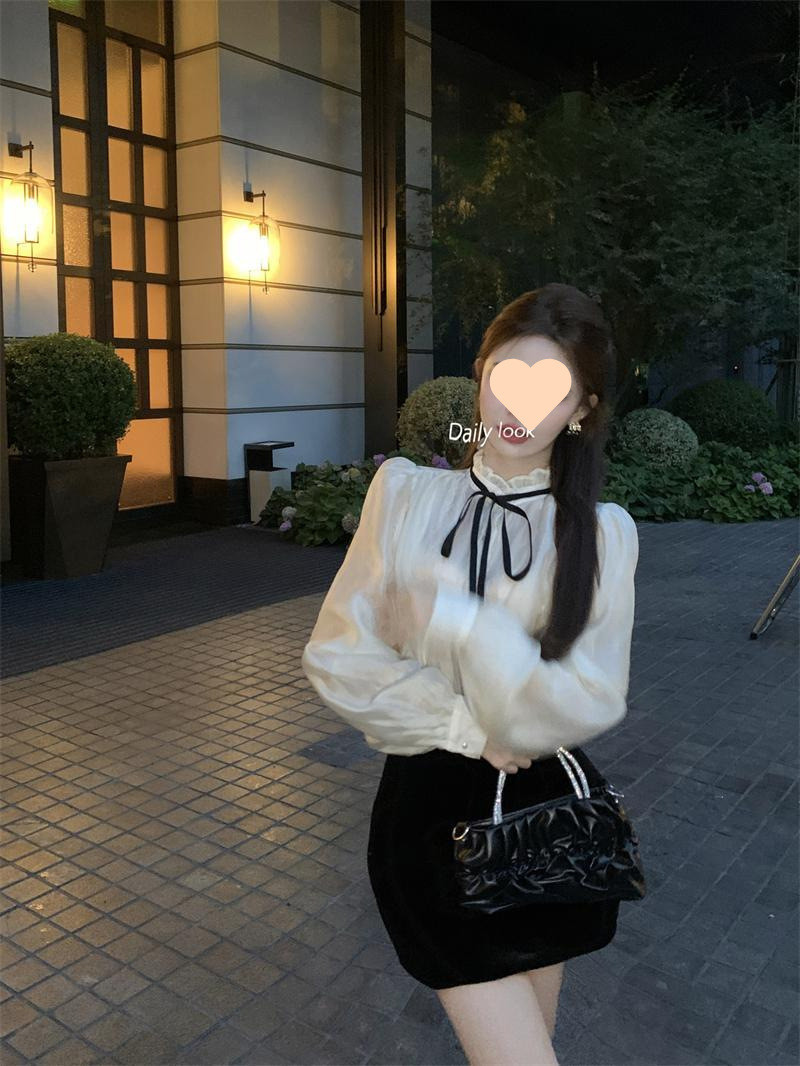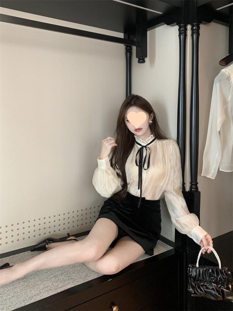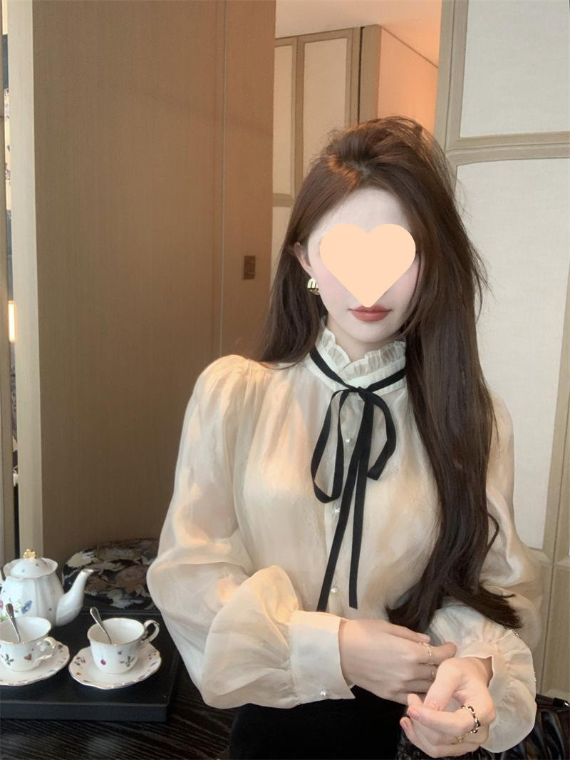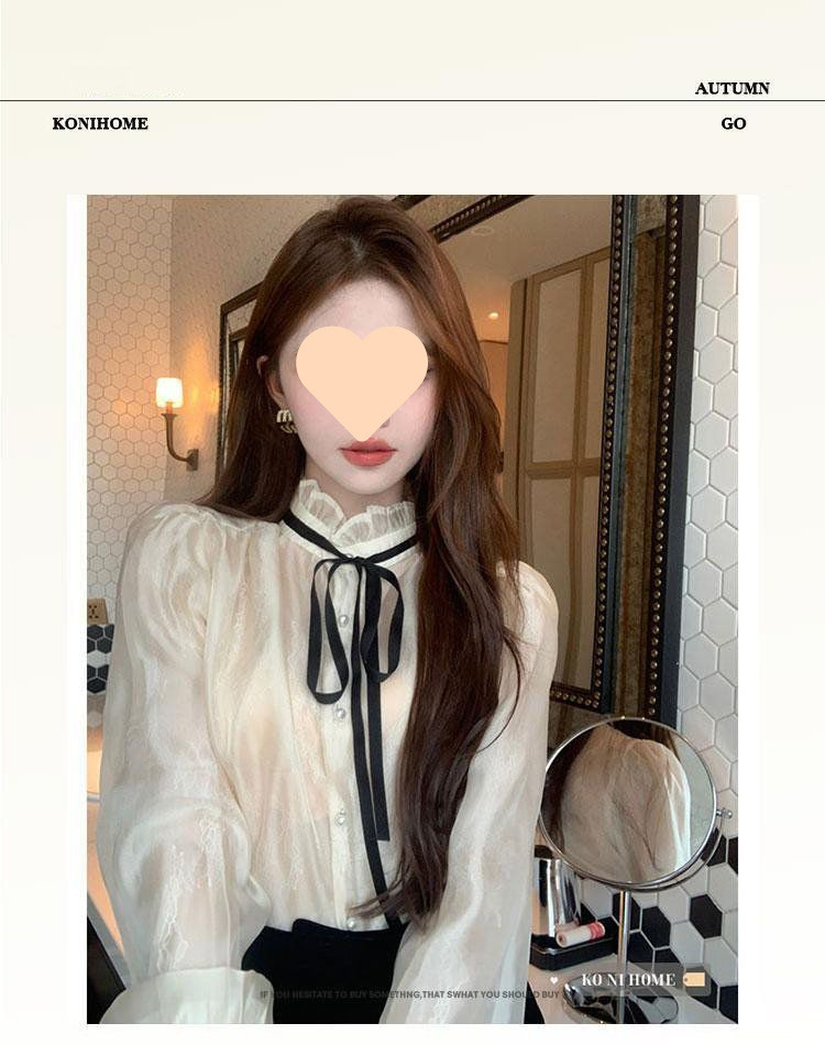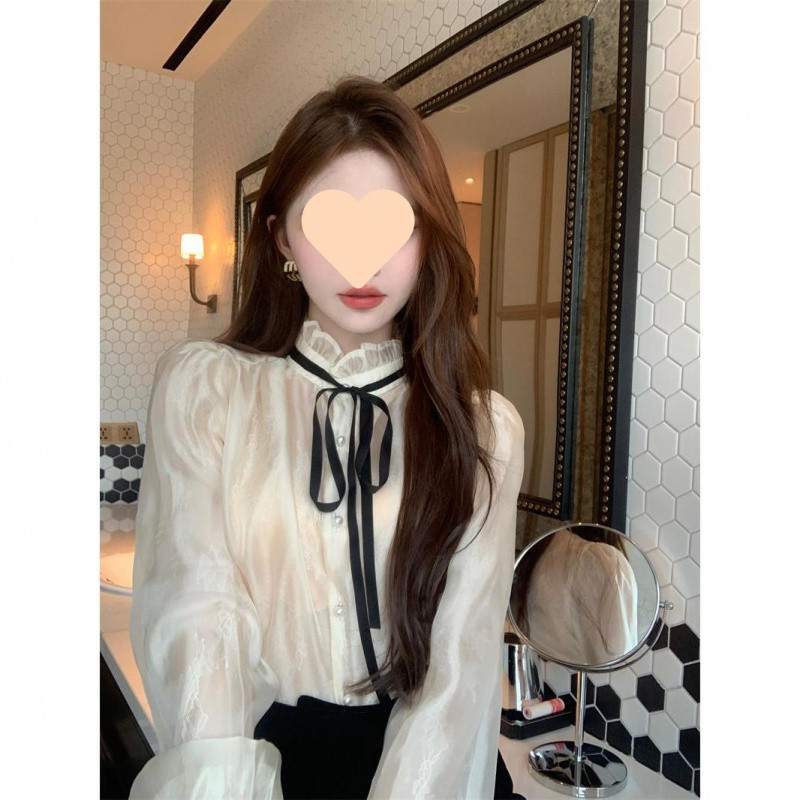 A6C 시폰 셔츠 여성 프랑스 스타일 레이디 스타일 긴 소매 셔츠 여성의 가을 새로운 스타일 궁전 스타일 라이닝스토어 가기