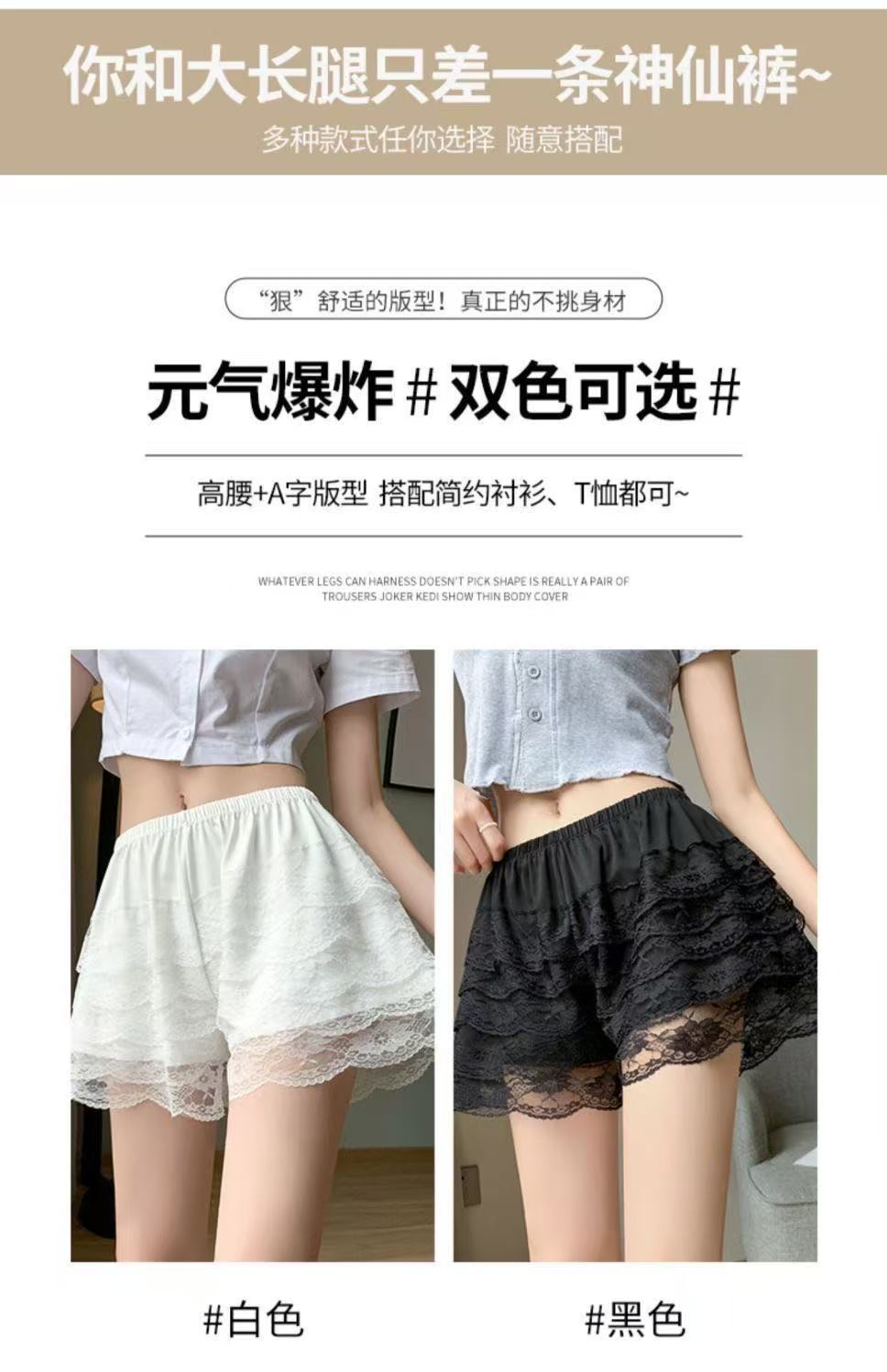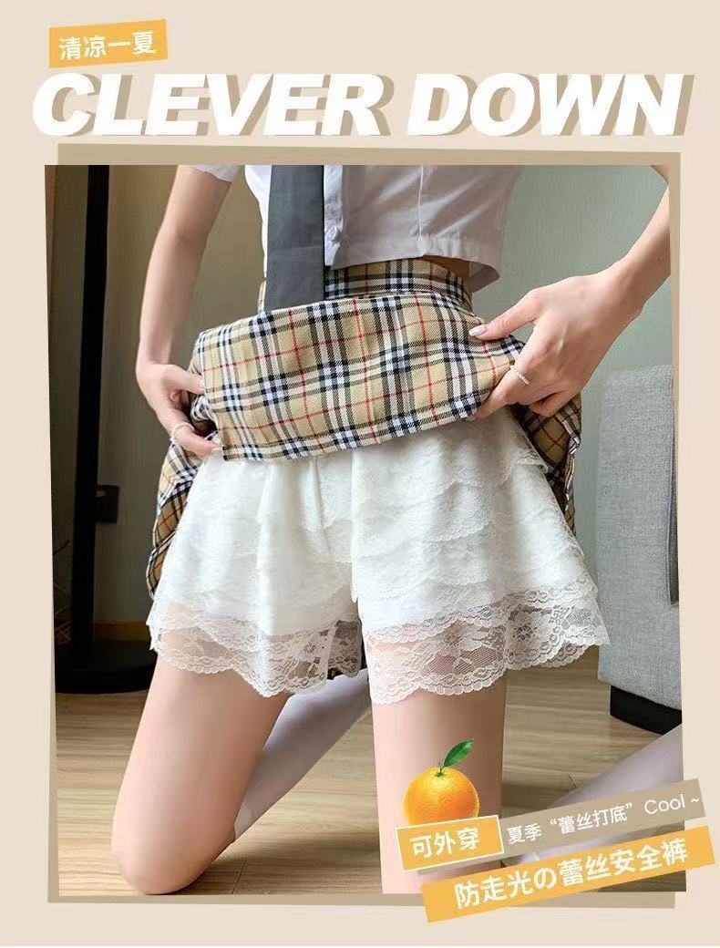 다층 레이스 jk 안전 바지 노출 방지 외부 착용 가능 스커트 느슨한 레깅스 반바지 공장 도매스토어 가기