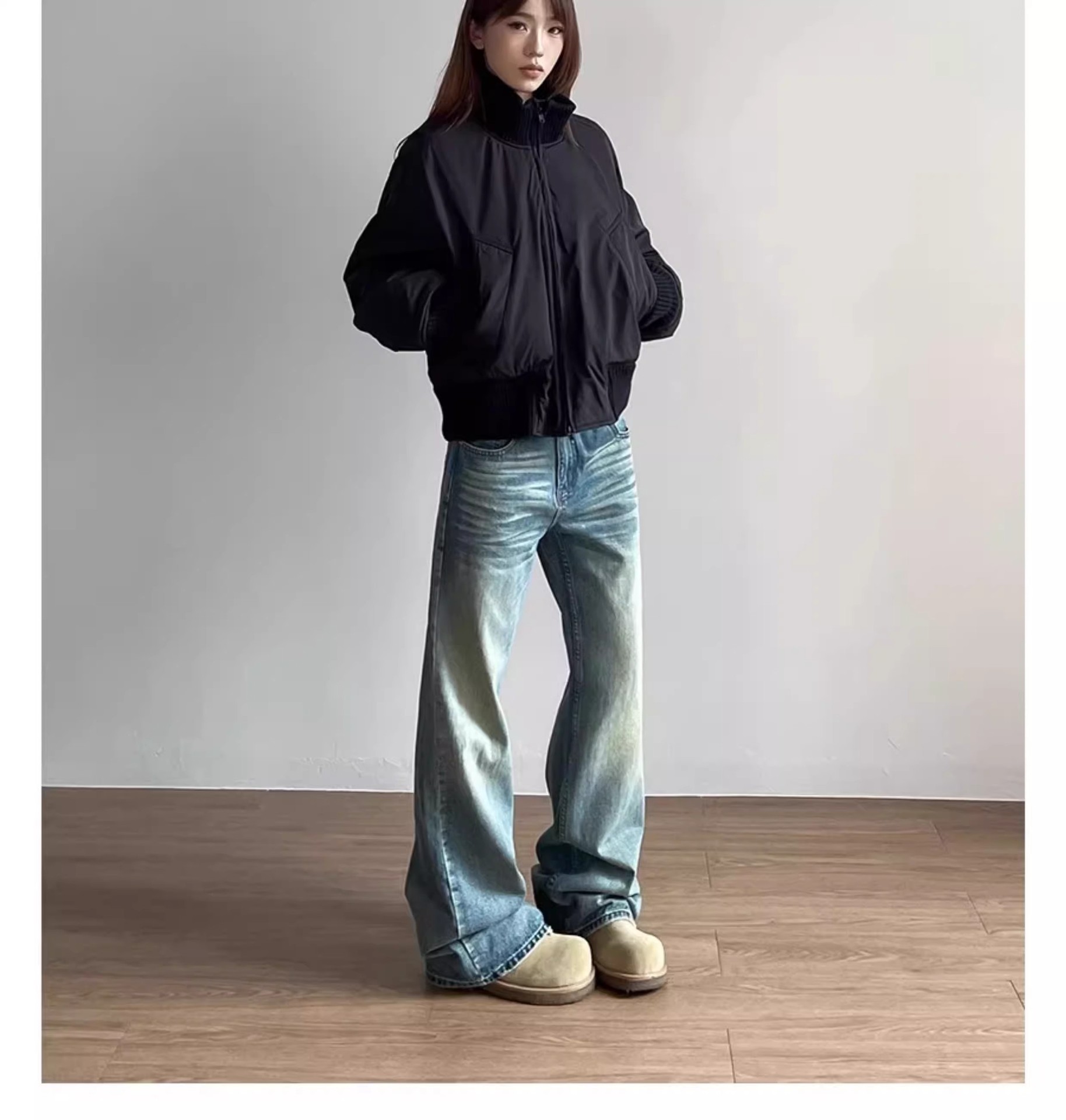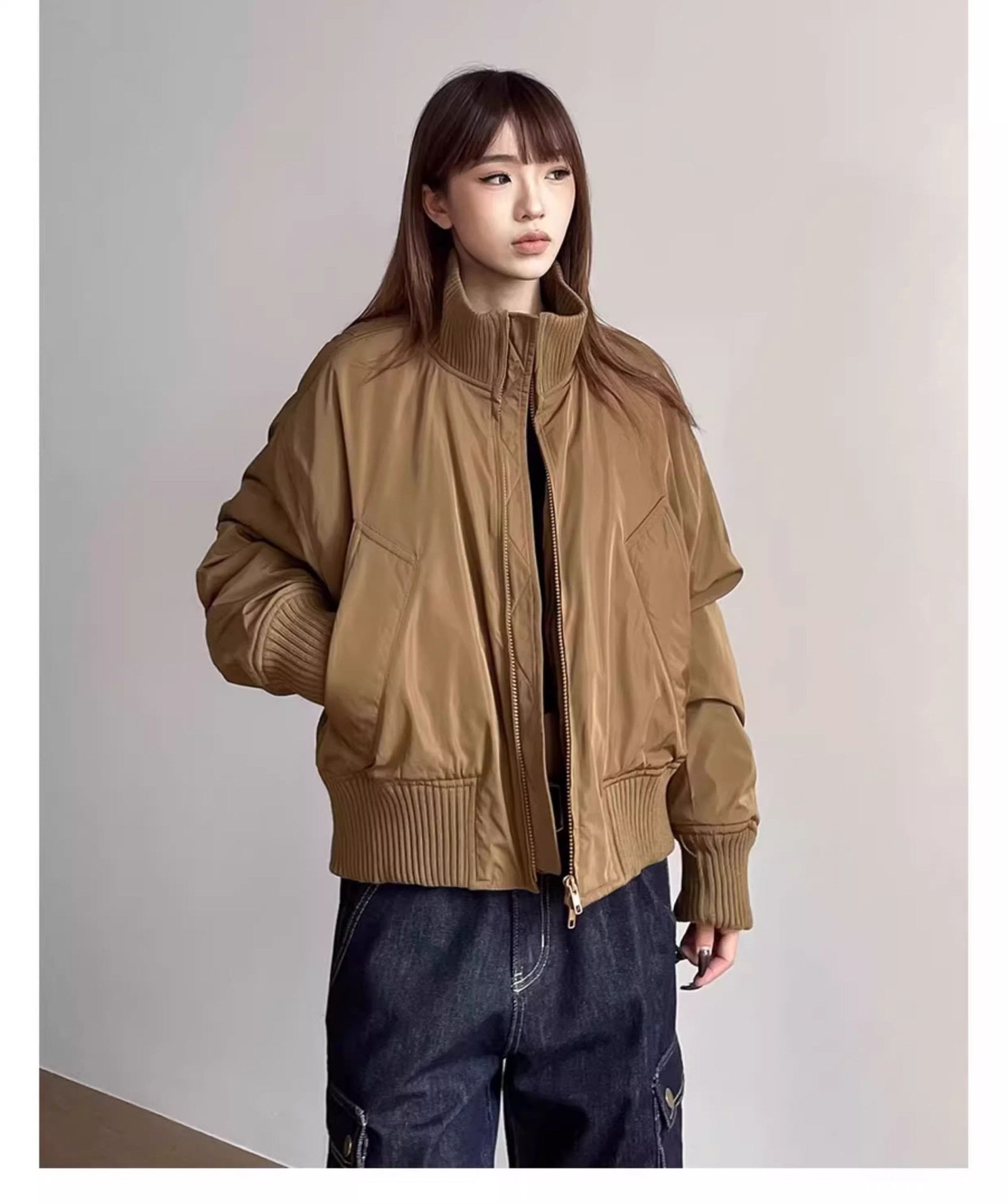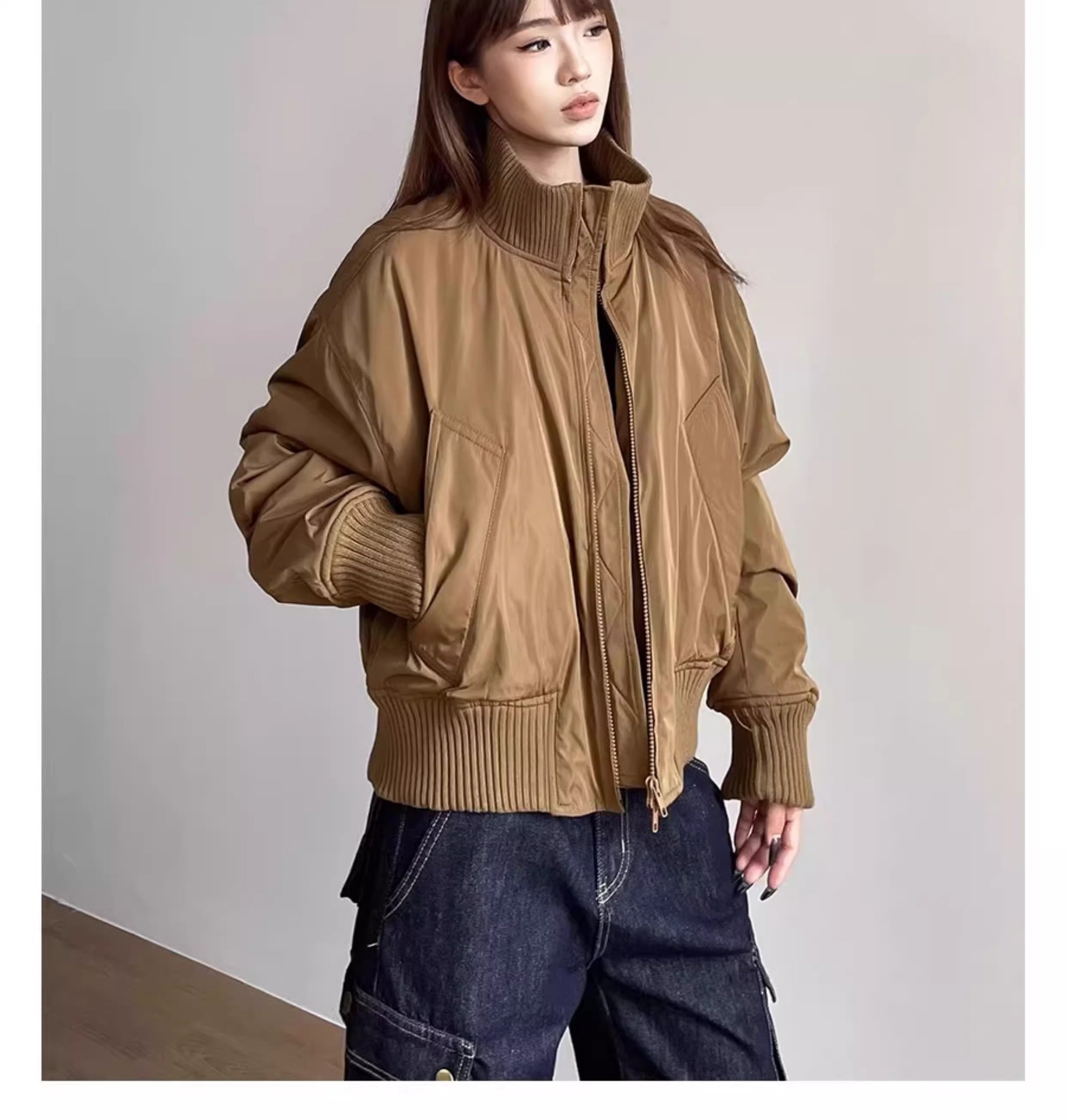 아메리칸 하이 스트리트 실루엣의 폭격기 재킷 한국 여성 봄, 가을 복고풍 스타일 짧은 야구 유니폼 하이 엔드 탑 재킷