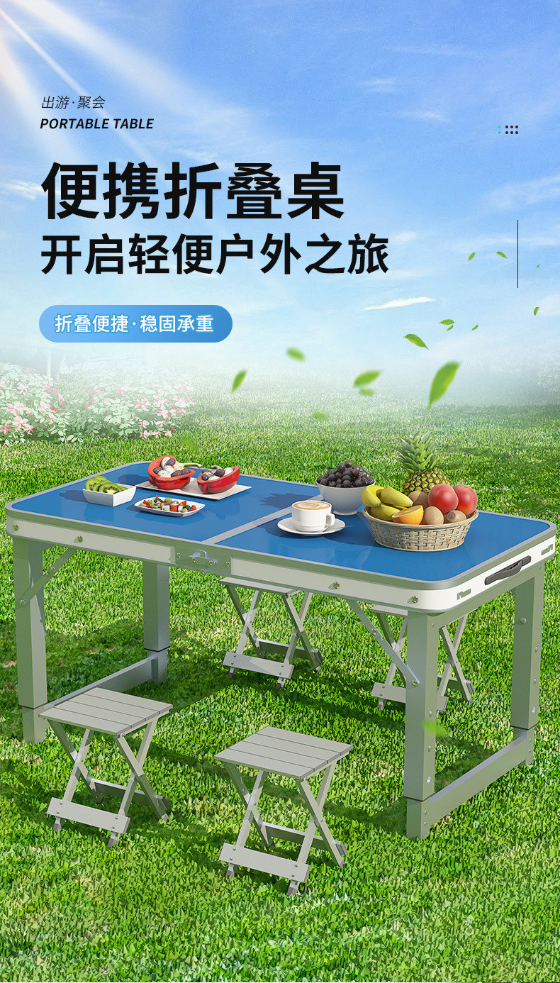 야외 테이블과 의자 세트 접이식 휴대용 캠핑 테이블과 의자 세트 피크닉 용품 알루미늄 합금 스톨 테이블 풀 세트스토어 가기