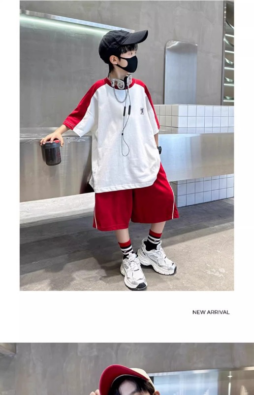 어린이 착용 소년 여름 착용 세트 2025 새로운 스타일 소년의 여름 반팔 운동복 멋쟁이스토어 가기