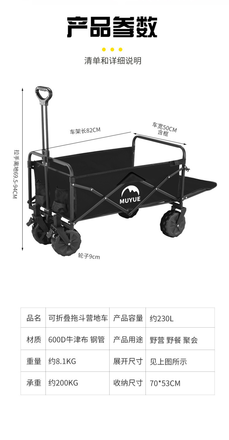 캠핑 카트 접이식 야외 핸드 푸시 피크닉 카트 휴대용 캠프 트레일러 트롤리 다기능 캠핑 스톨 카트스토어 가기