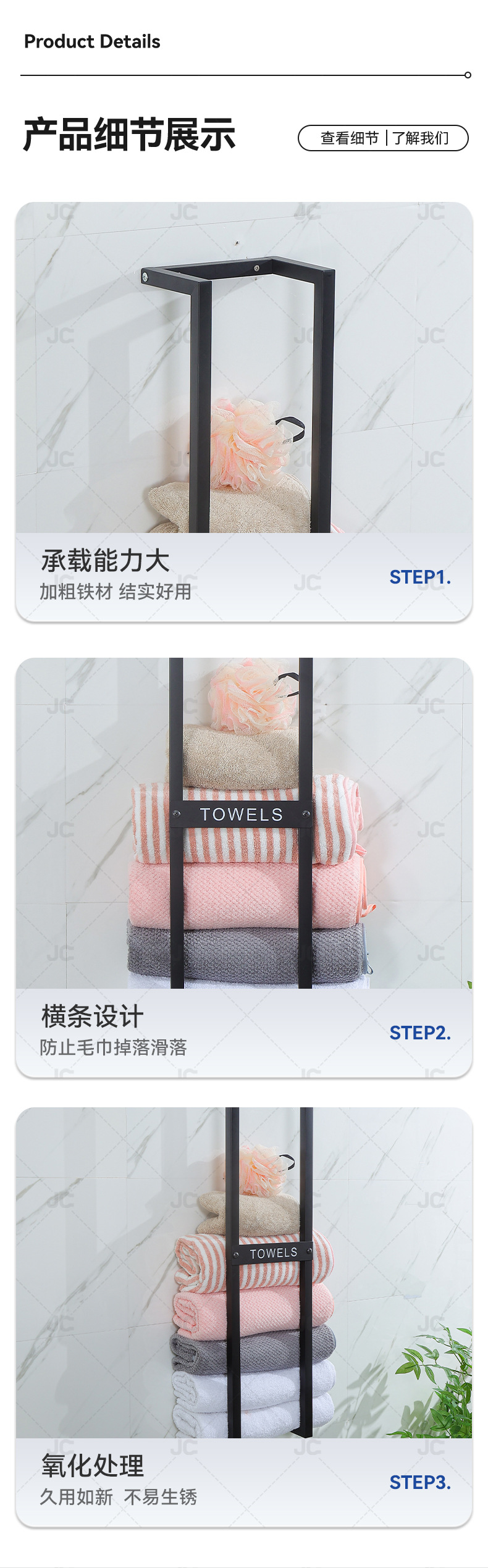 국경 새 벽걸이 형 욕실 수건 랙 사각 튜브 철 보관 욕실 수건 보관 랙 도매스토어 가기
