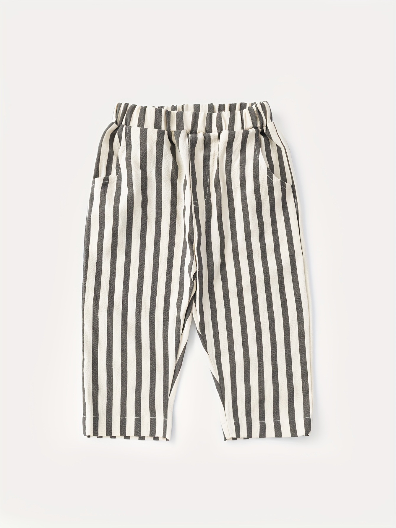 Ins Korean Style 봄과 가을 남녀 아기 줄무늬 바지 앞뒤 포켓 캐주얼 외출 바지