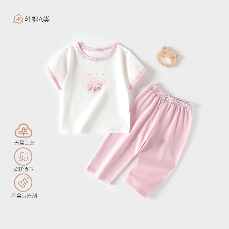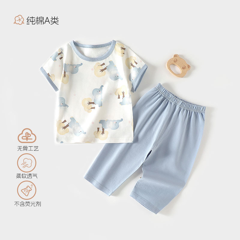 신생아 아기 옷 여름 얇은 에어컨 옷 분할 세트 아기 여름 옷 클래스 순수한면 여름 잠옷