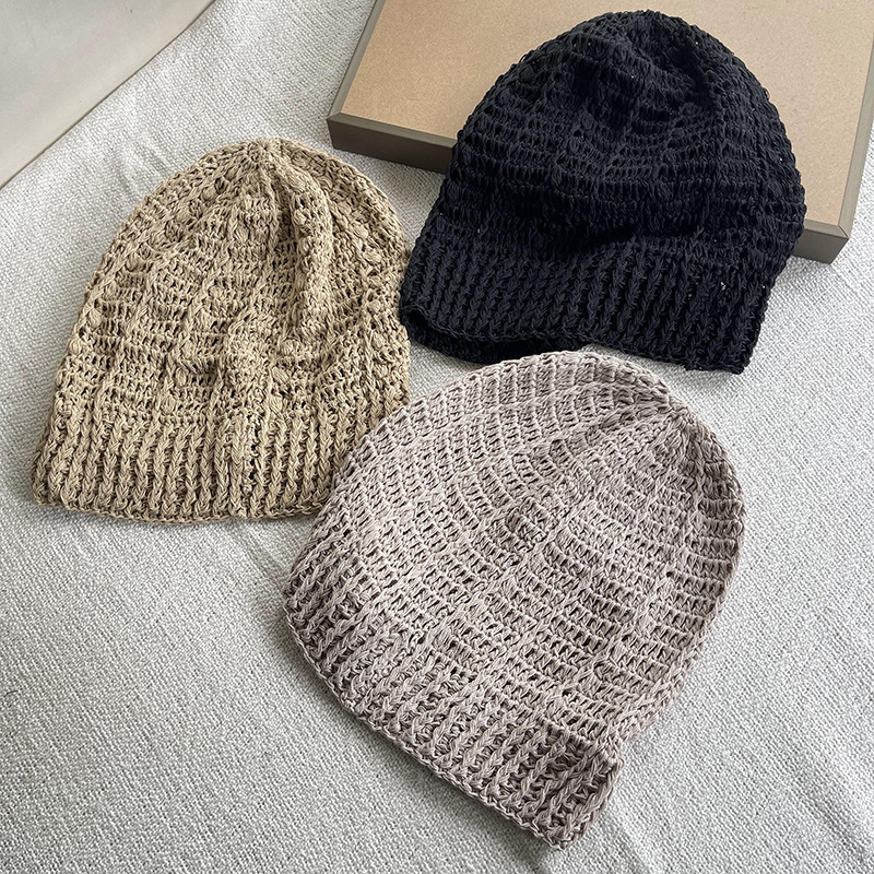 亚麻镂空针织凉感垂坠堆堆帽文艺休闲百搭日系包头帽春夏套头帽男