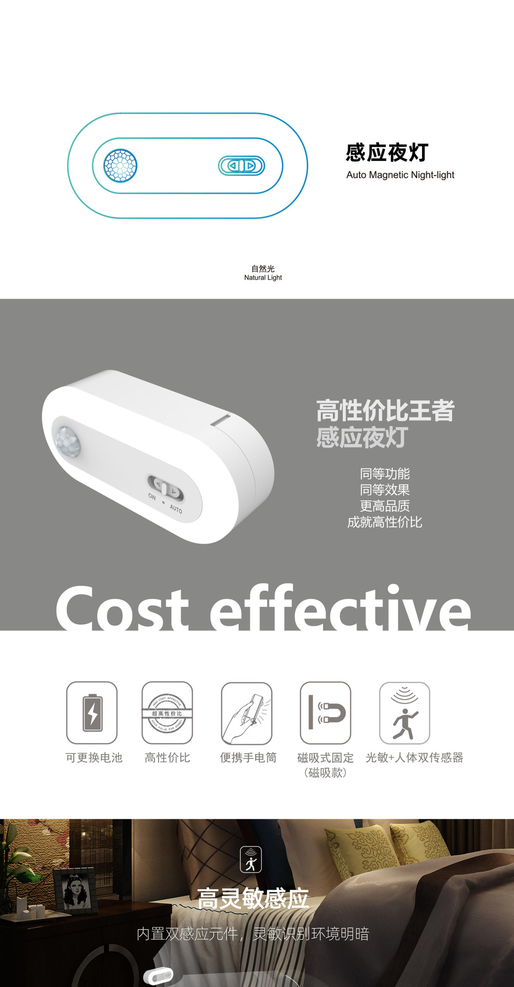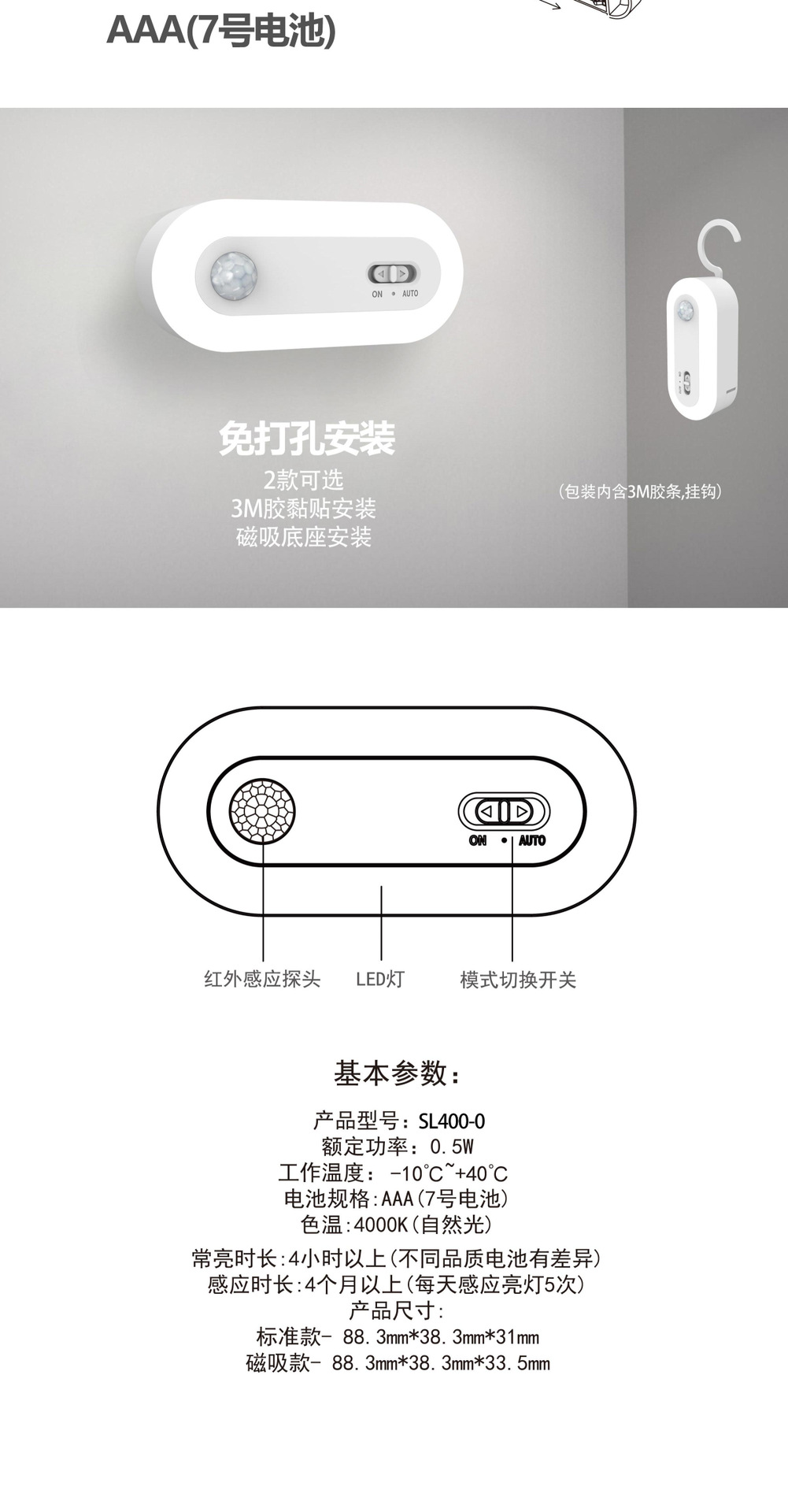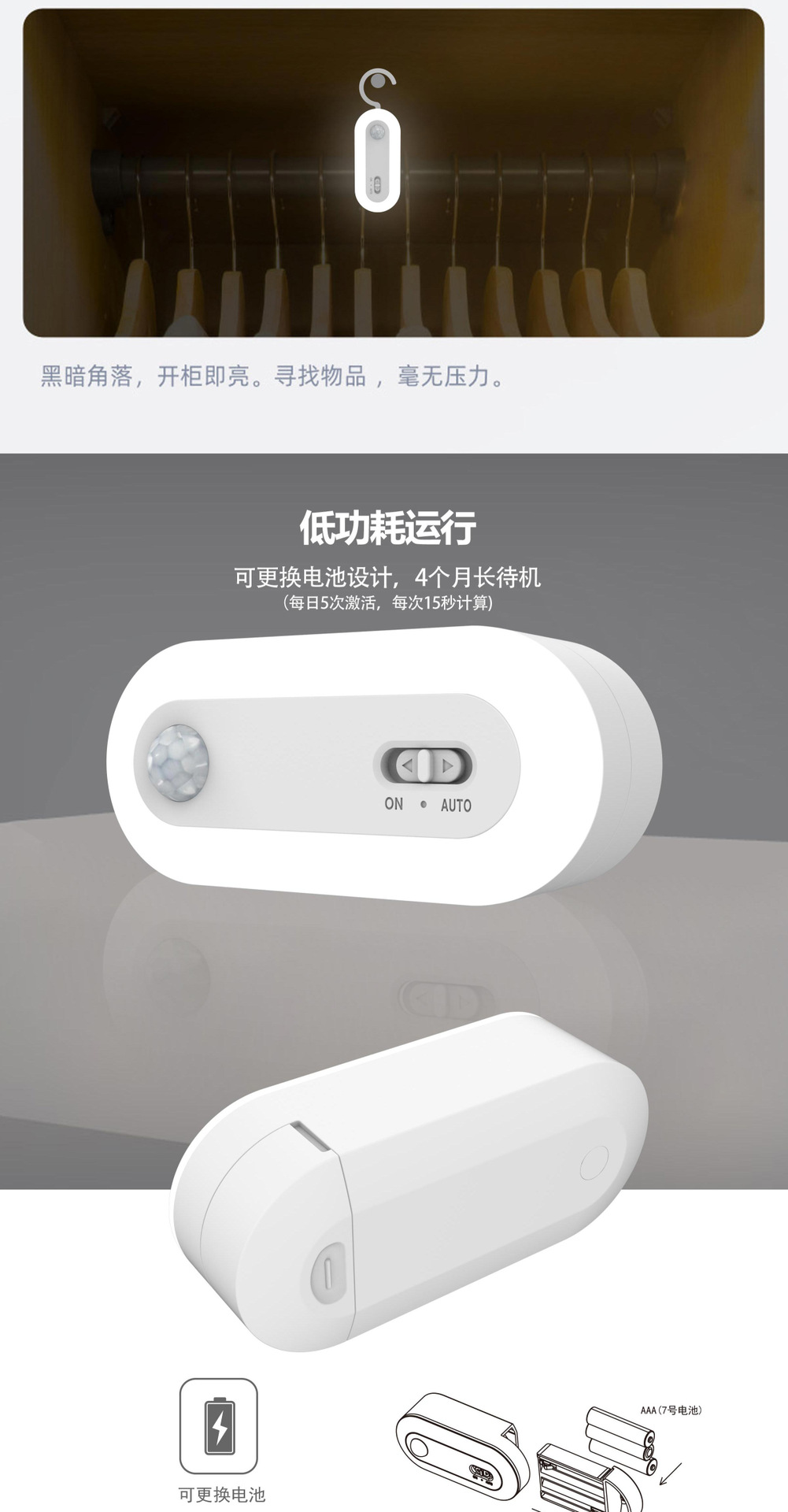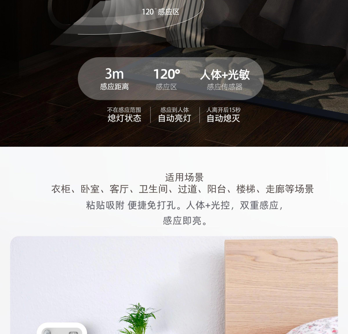 Tuya 스마트 인체 유도 야간 조명 침실 미니 옷장 램프 펀치없는 자기 고감도 야간 조명스토어 가기