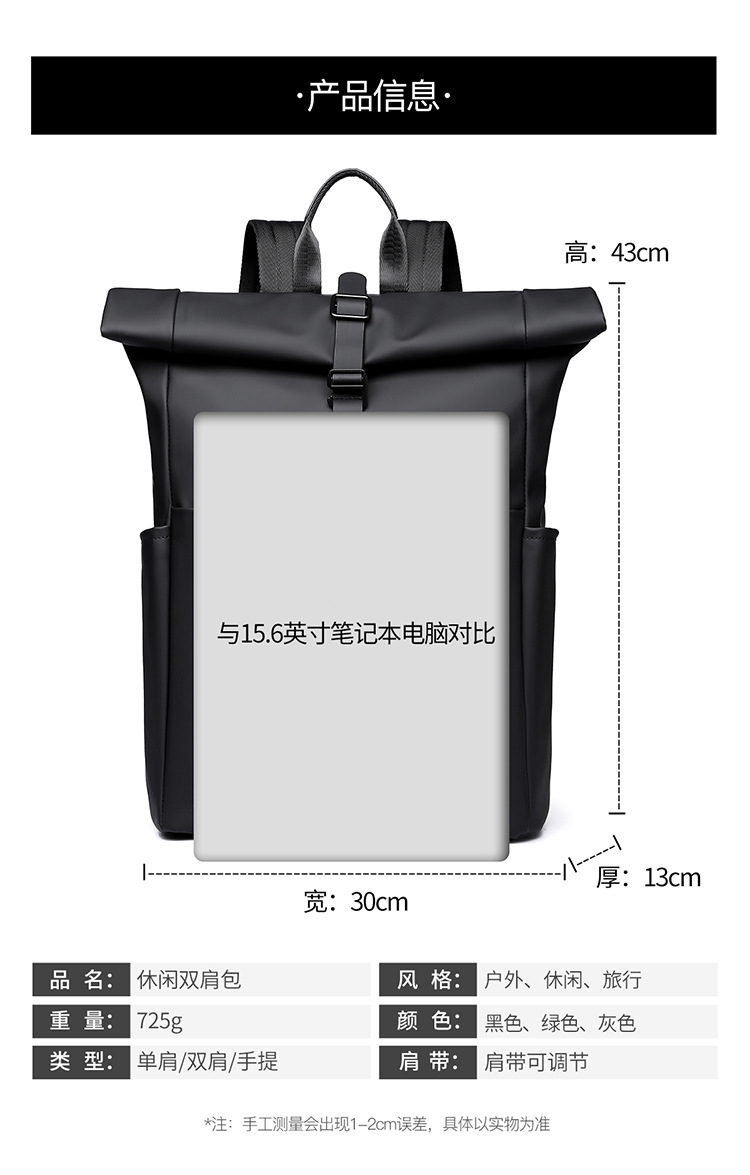 새로운 배낭 야외 레저 남성 작업 통근 컴퓨터 가방 여행 가방 유행 Curled 여행 배낭스토어 가기