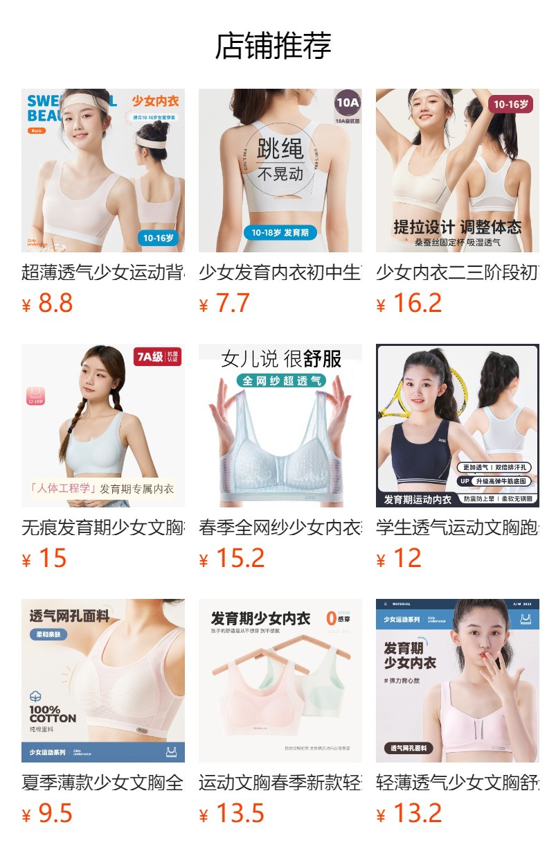 고정 삼각 컵 발달 기간 속옷 2단계 중학생 스포츠 조끼 가볍고 통기성이 좋은 소녀 브라스토어 가기